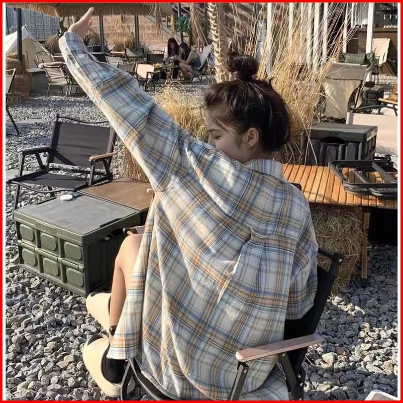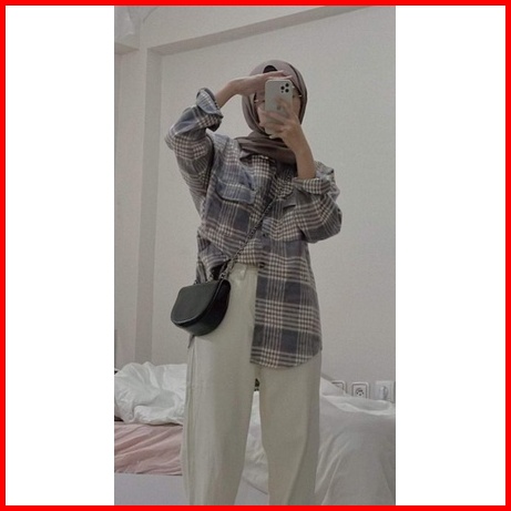 Kemeja Flanel Unisex Wanita Lengan Panjang Motif Kotak-kotak Kwalitas Premium
