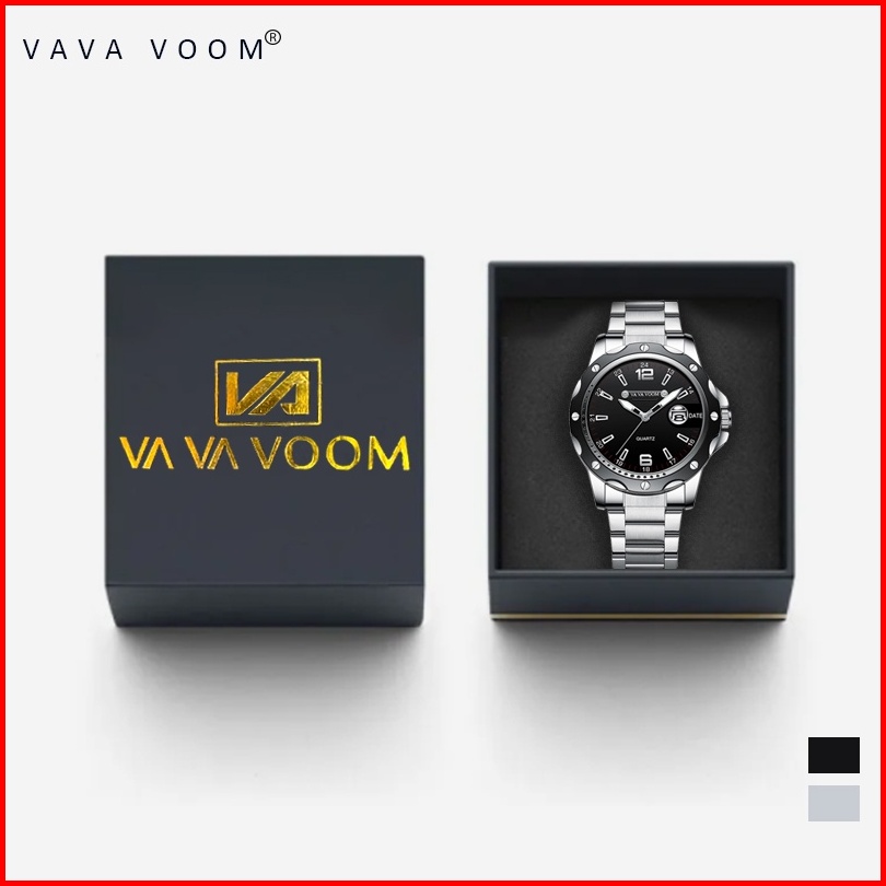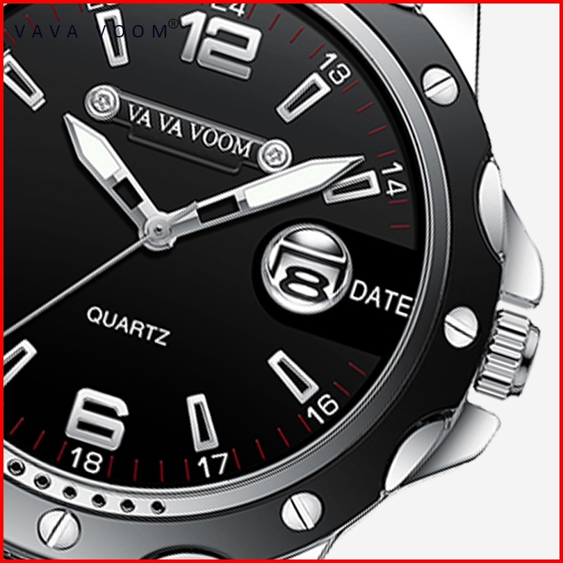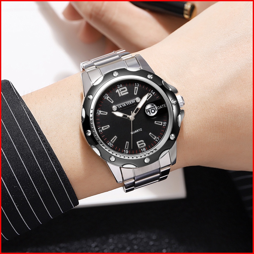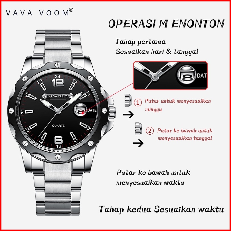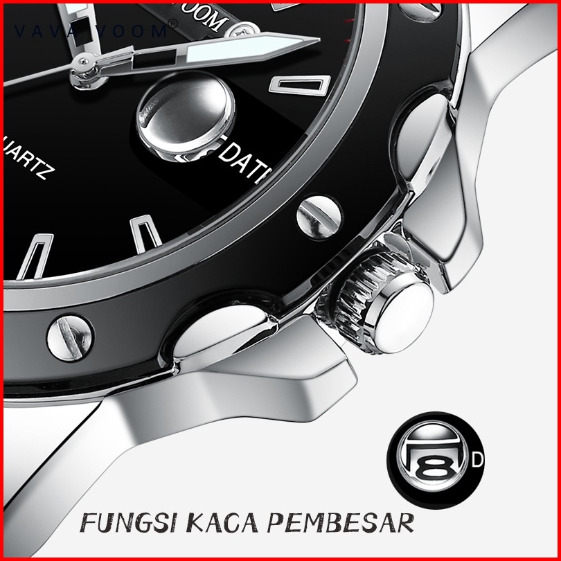 Va Va Voom 2411 Jam Tangan Pria Olahraga Kuarsa Otomatis Date Tali Stainless Steel Kasual Pria Jam Tangan