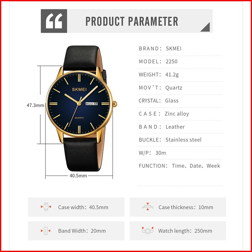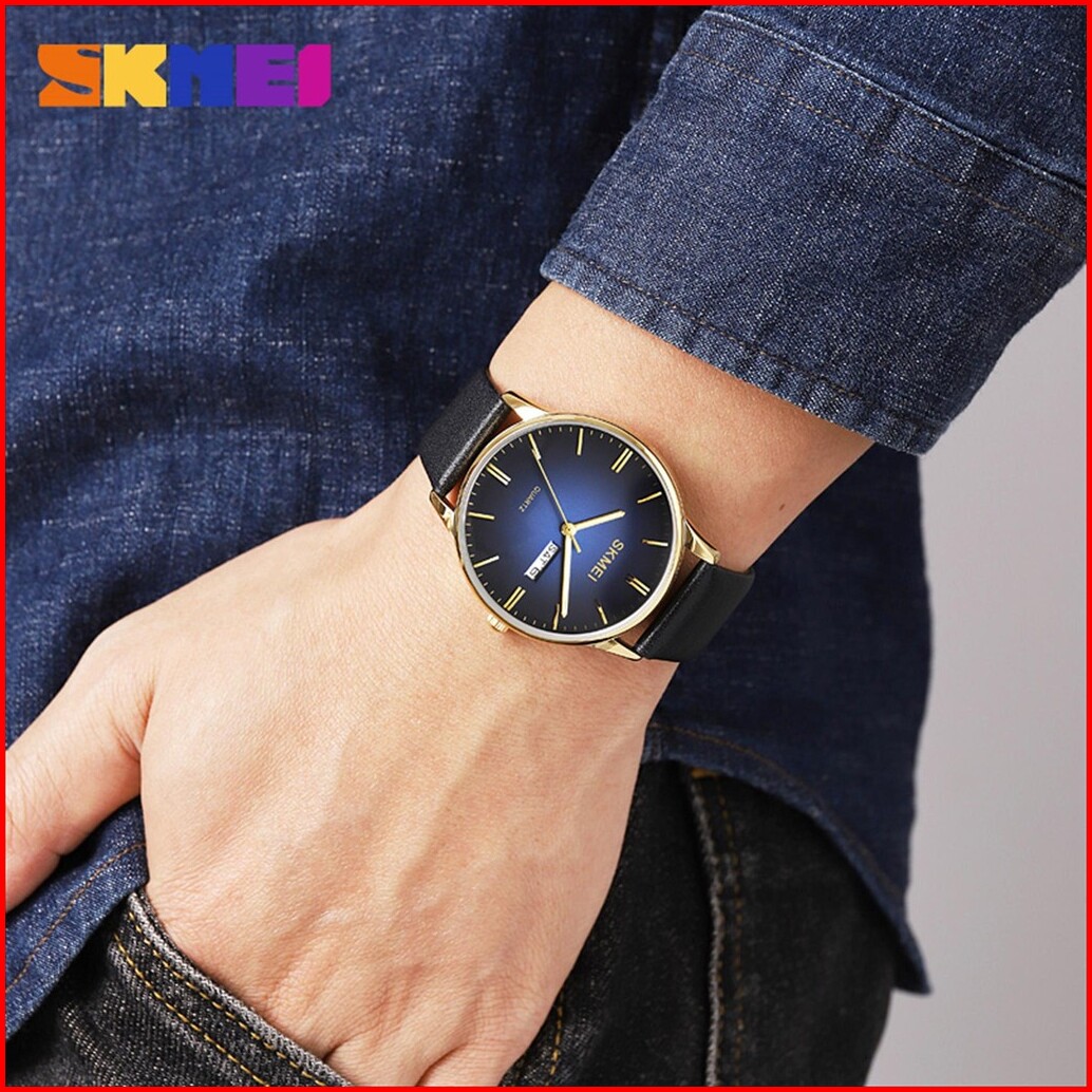Jam Tangan Pria Analog Date Day Skmei 2250 Leather Strap Tahan Air Original 30m