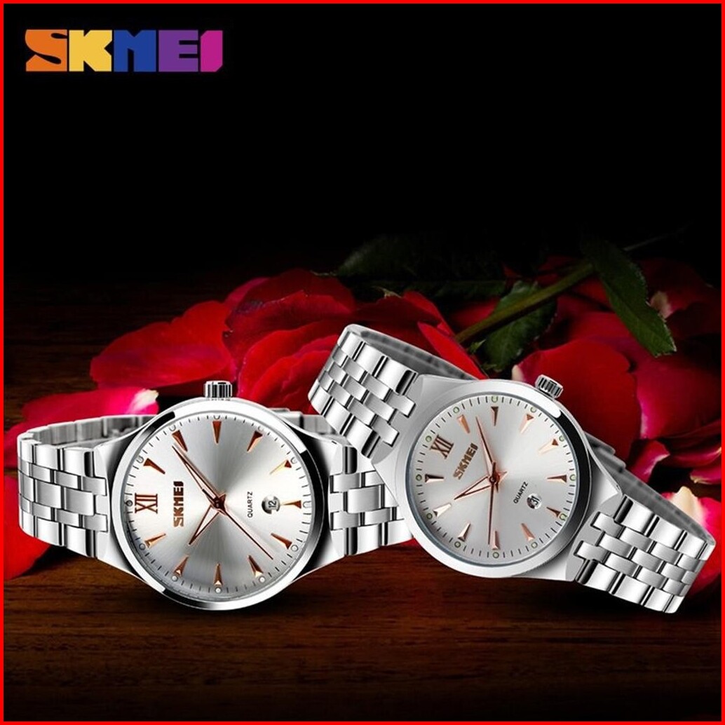 Jam Tangan Wanita Skmei 9071 Lady Jam Tangan Analog Stainless Steel Couple