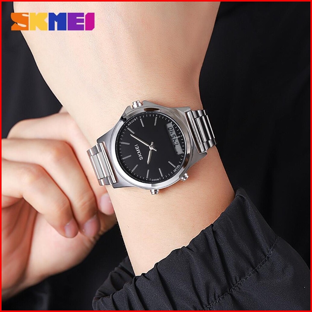 Jam Tangan Analog Digital Pria Skmei 2120 Water Resist Stainless Steel Water Resist Original