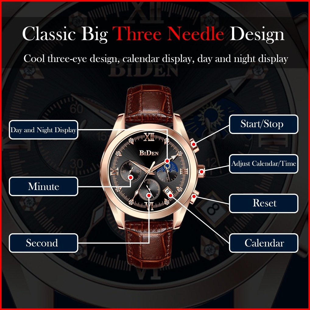Biden Jam Tangan Pria Anti Air Original Mode Santai Pria Kuarsa Chronograph Jam Tangan Cowok