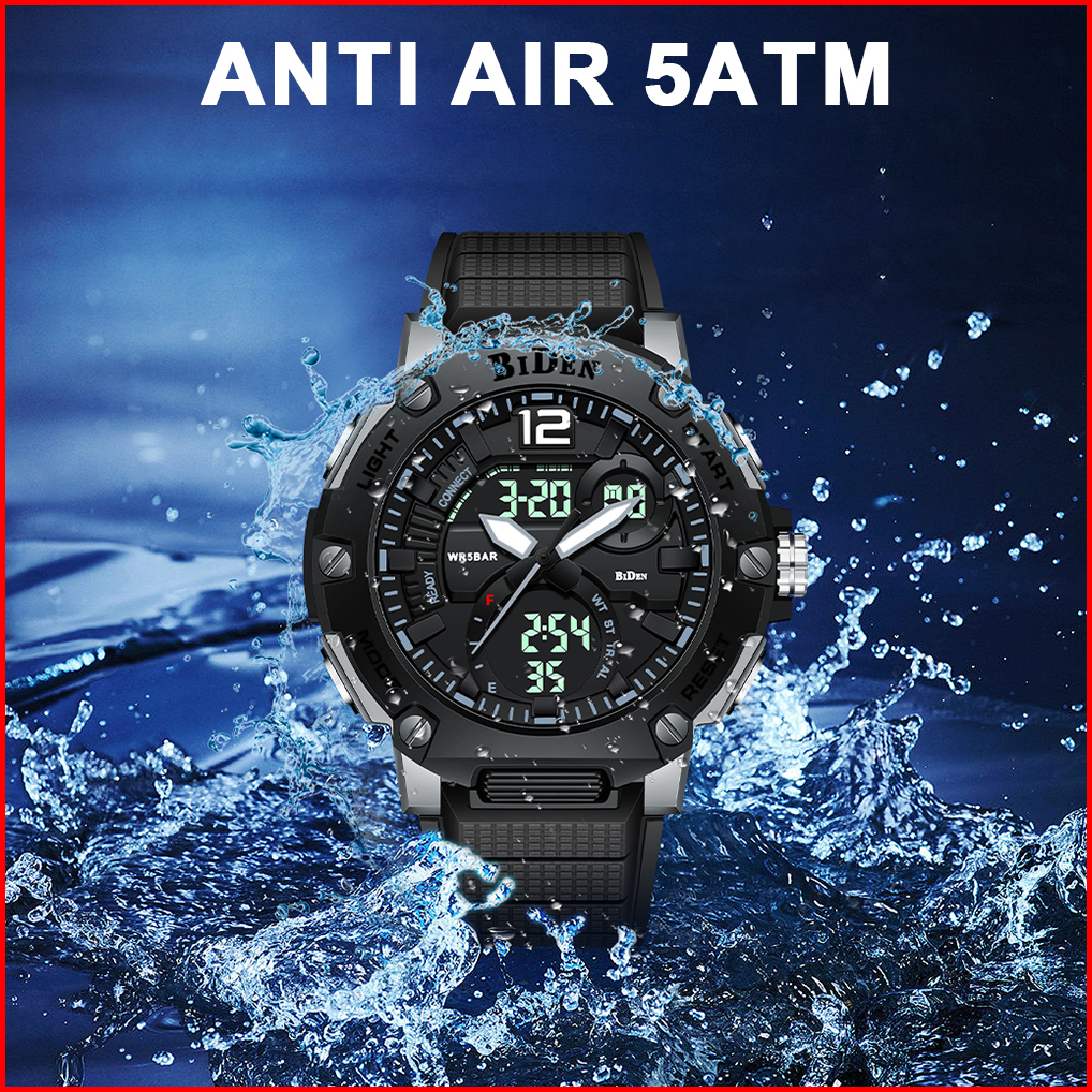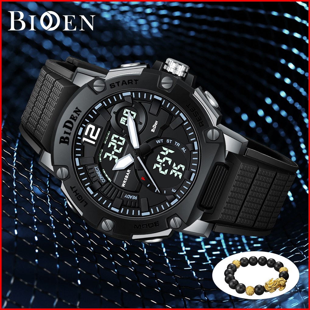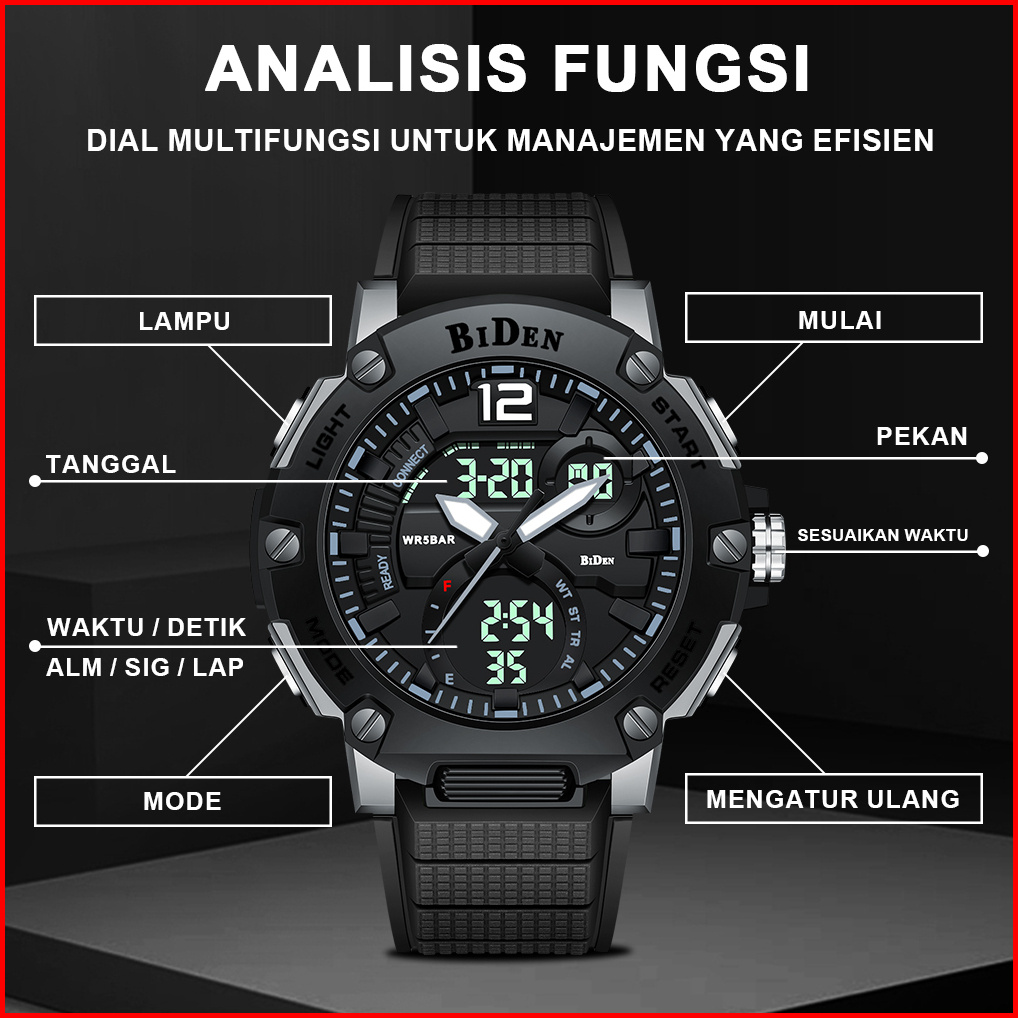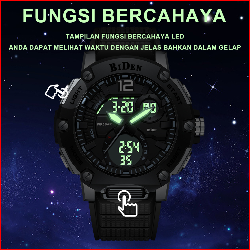 Biden Jam Tangan Pria Digital Olahraga Anti Air Original Alarm Bercahaya Multifungsi Tali Silikon Jam Tangan Cowok