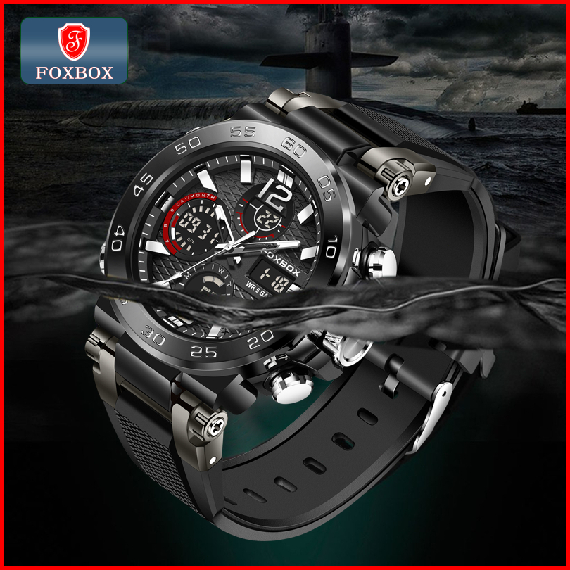 Foxbox Jam Tangan Untuk Pria Led Tahan Air Olahraga Elektronik Jam Tangan Silikon Jam Tangan Lige Jam Alarm Tanggal Lige