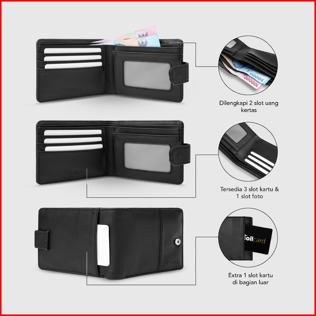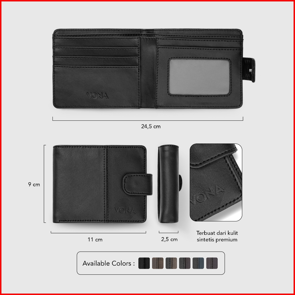 Vona Brody Wallet - Dompet Lipat Pria Kulit Pu Dengan Kancing