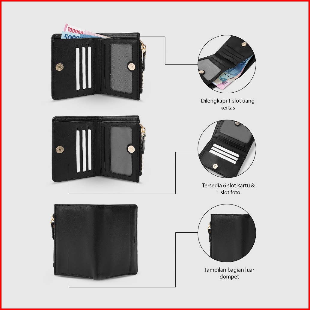 Vona Catalina Wallet - Dompet 3 4 Wanita Lipat Dua Resleting Koin Pu Premium