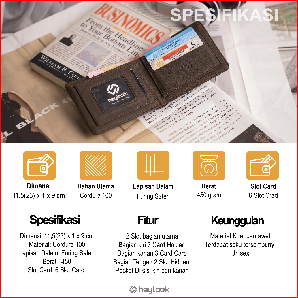 Heylook - Dompet Pria Pendek Dayton 2.0 Dompet Kulit Lipat Premium Dompet Kartu Id Card Distro Terbaru