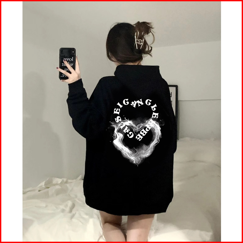 Sweater Hoodie American Retro Lengan Panjang Heart Graffiti Print Hoodie Oversize Street Style Premium Sweatershirt