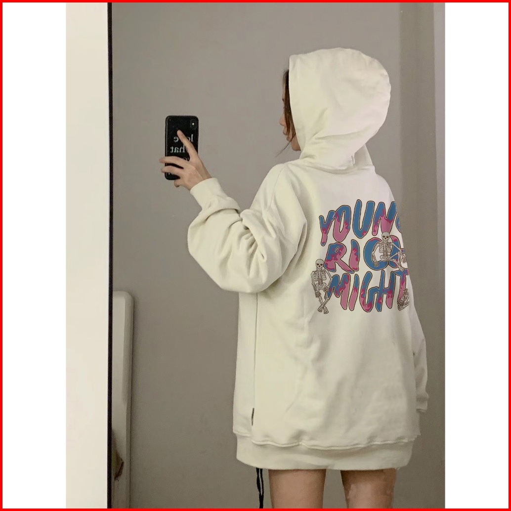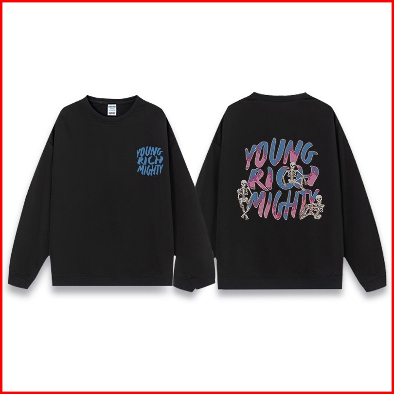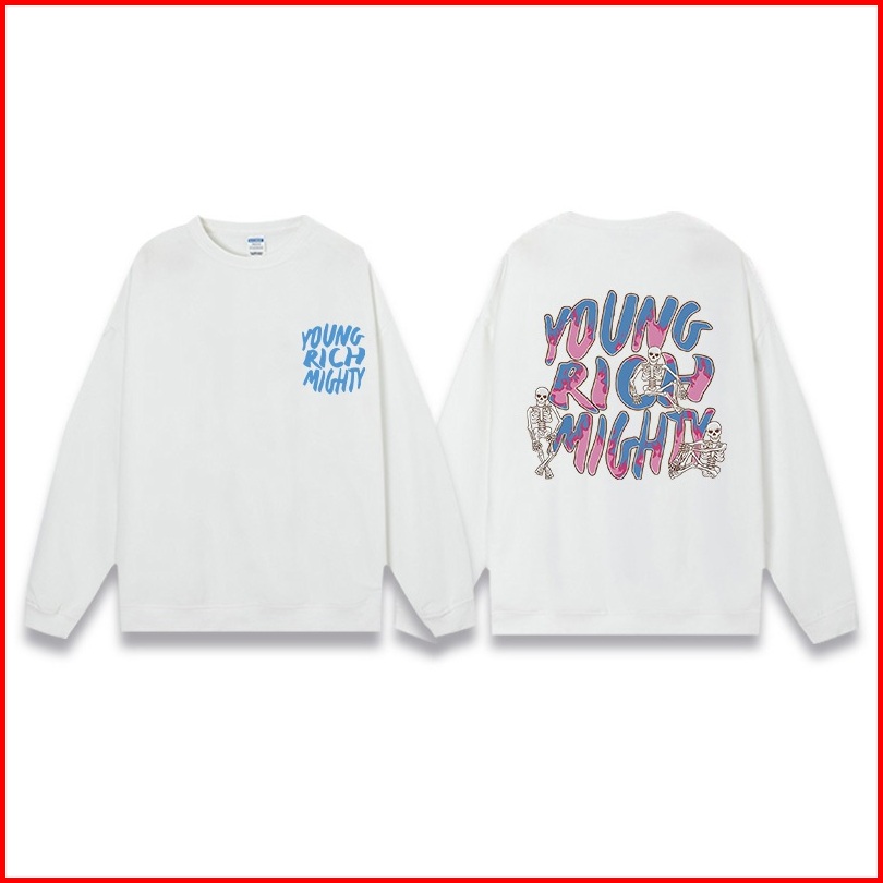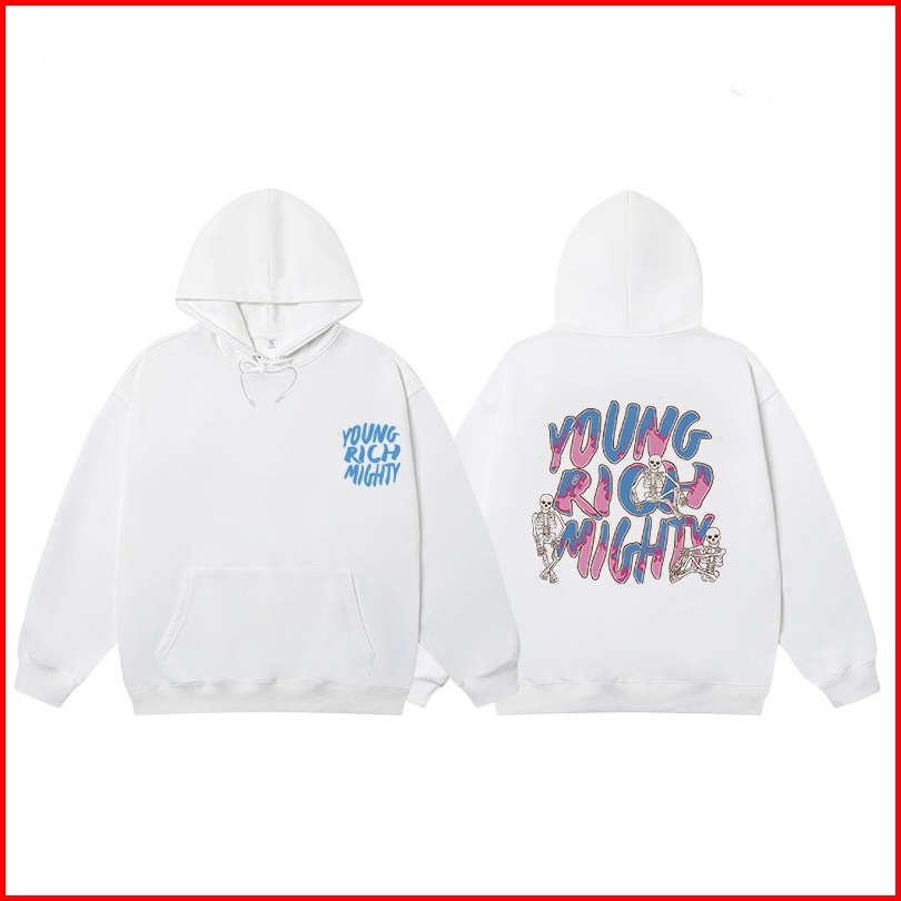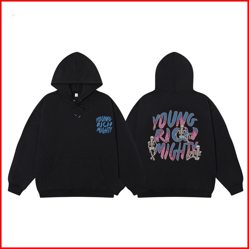 Sweter Oversize Wanita Street Style Young Rich Mighty Motif Colorful Graffiti Printed Swetershirt Wanita Premium Hoodie