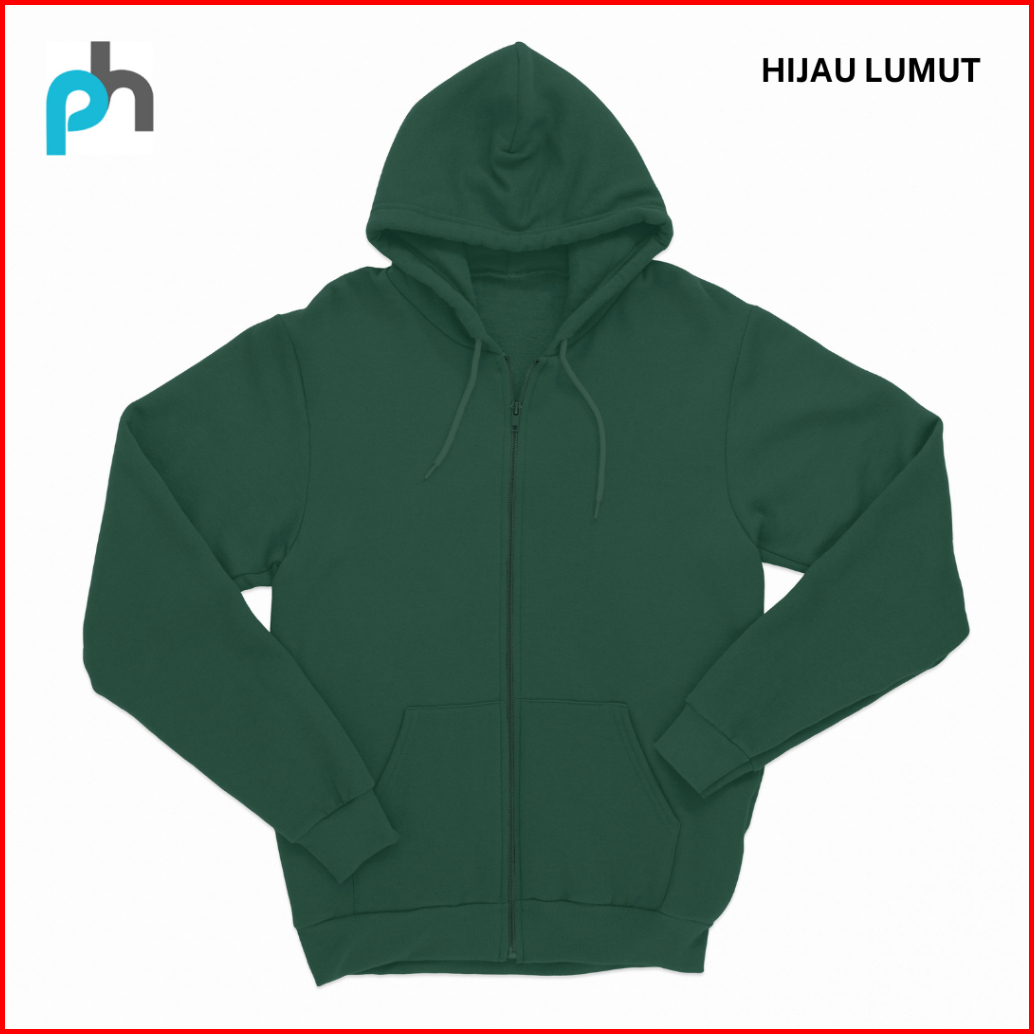 Pabrikhoodie - Jaket Hoodie Zipper Hijau Lumut Army Polos Pria Wanita M - Xxxl