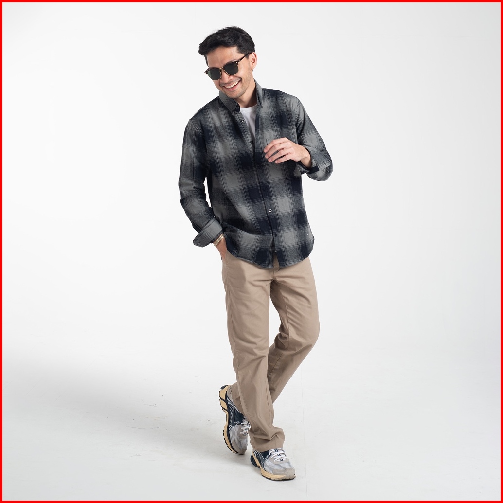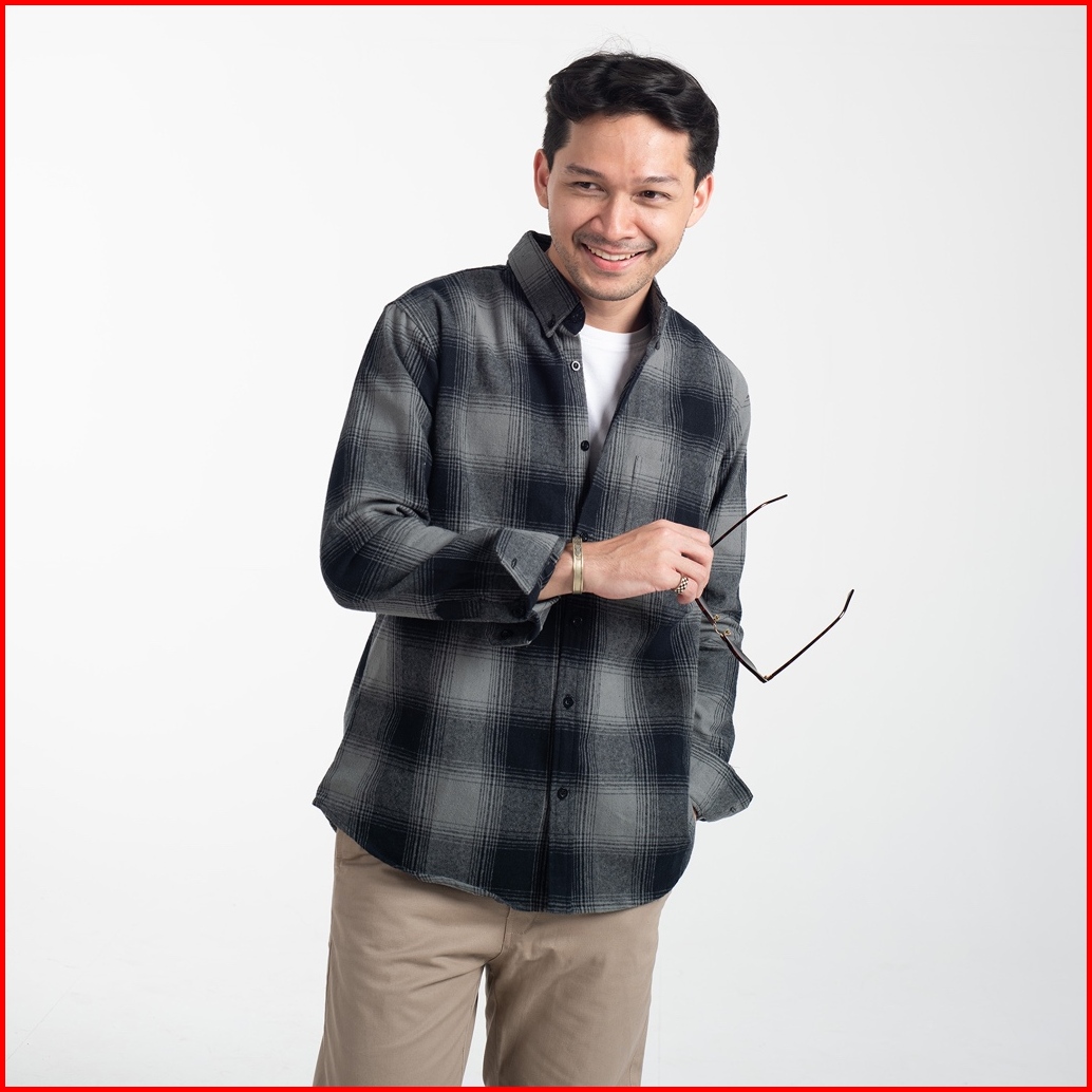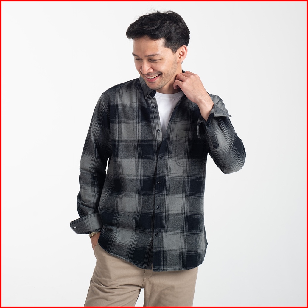 Kemeja Flanel Pria Woodcutter Dark Britania Flannel Shirt Lengan Panjang