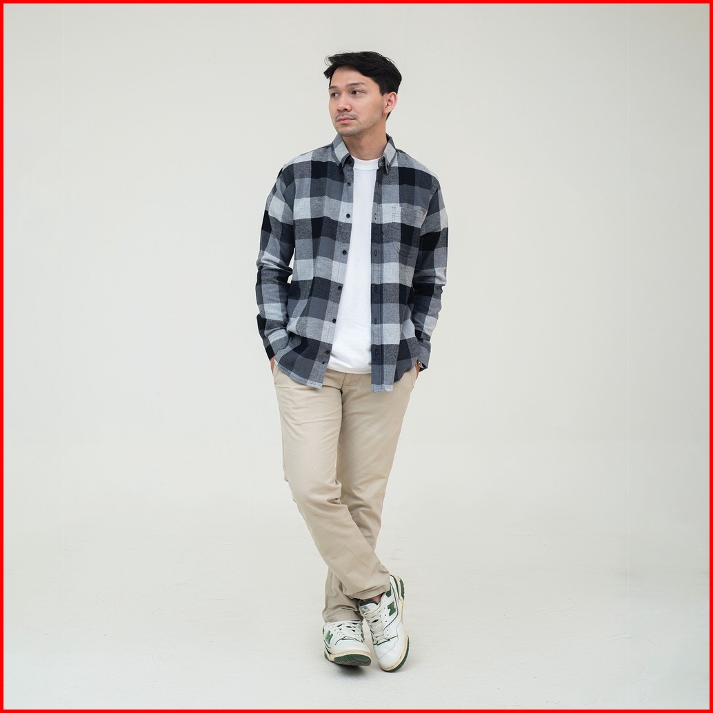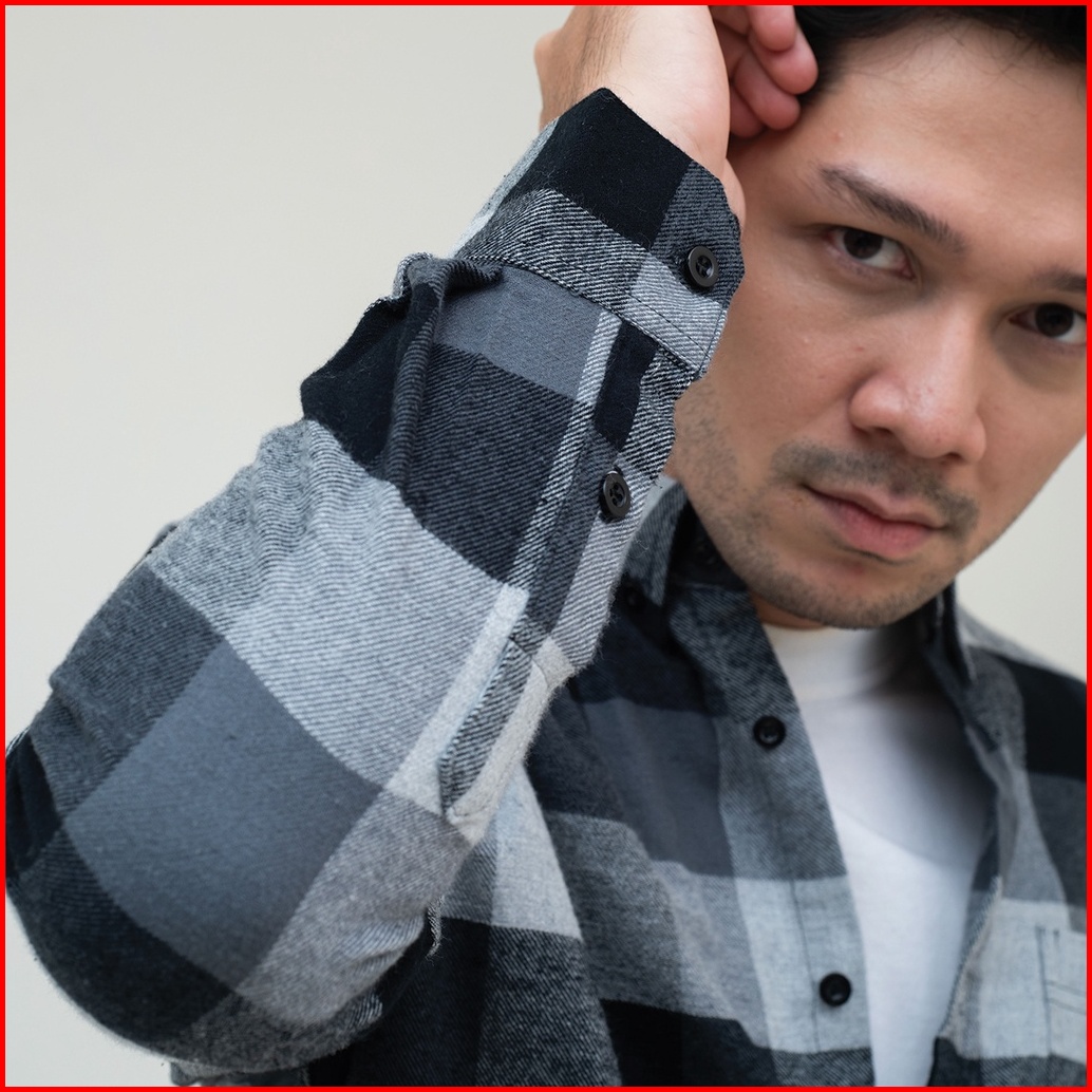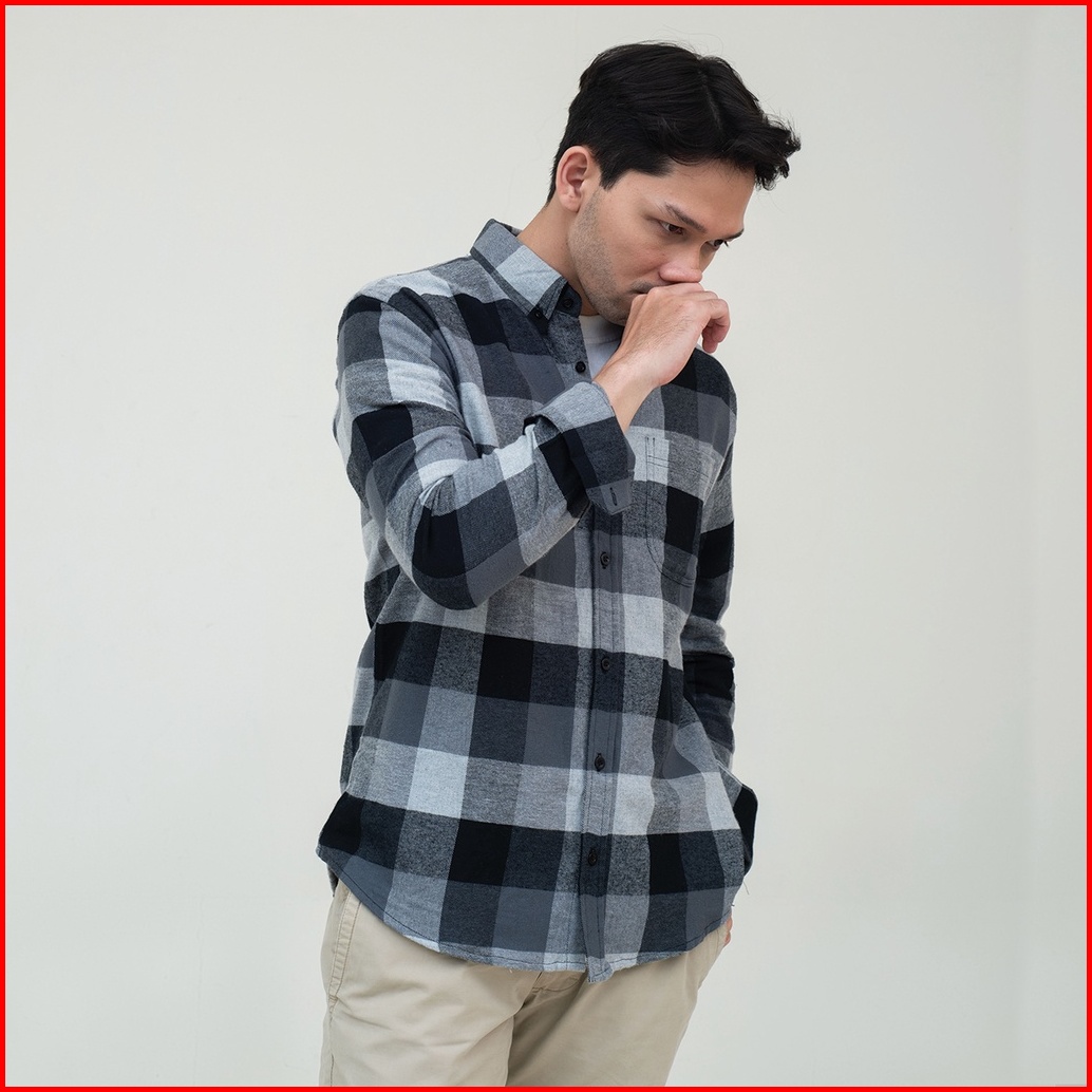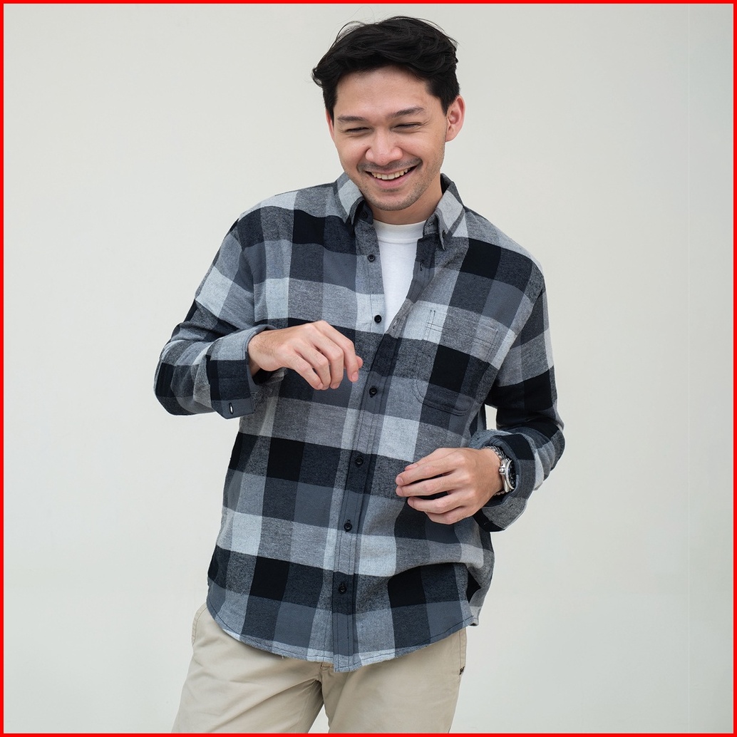 Kemeja Flanel Pria Woodcutter Dark Beverley Flannel Shirt Lengan Panjang