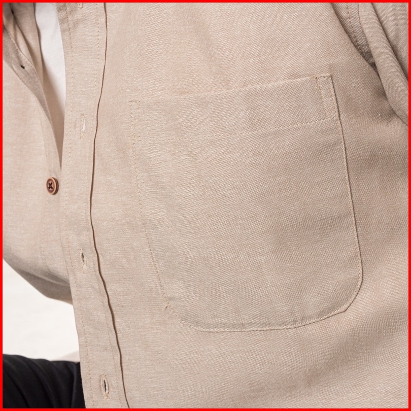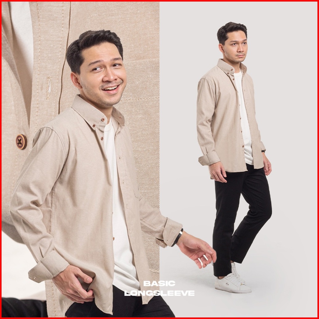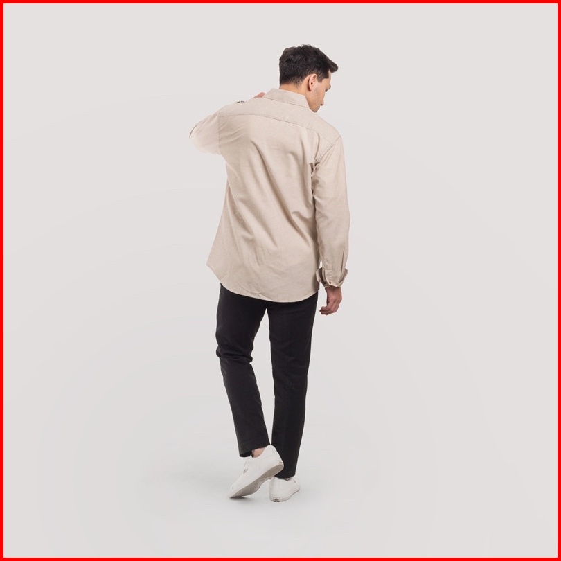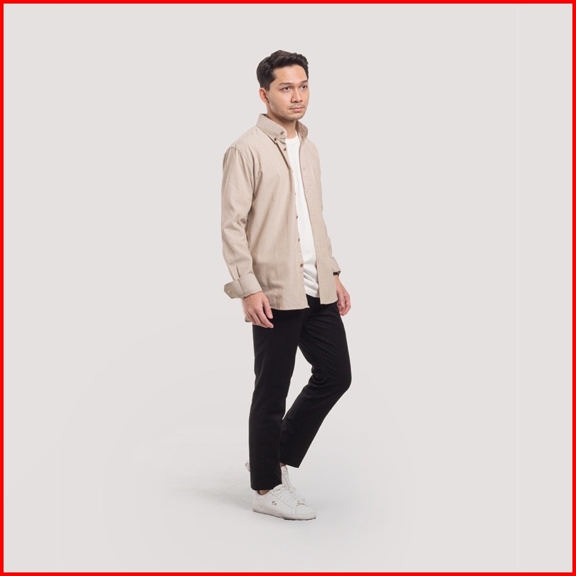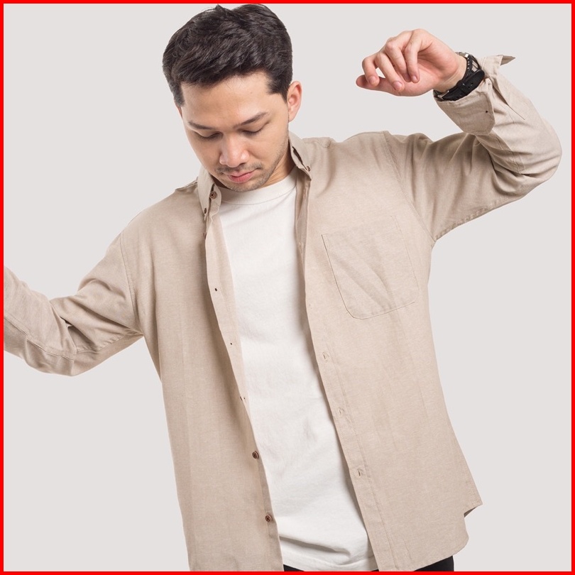 Kemeja Polos Pria Oxford Woodcutter Basic Shirt - Cream Khaky Longsleeve Lengan Panjang