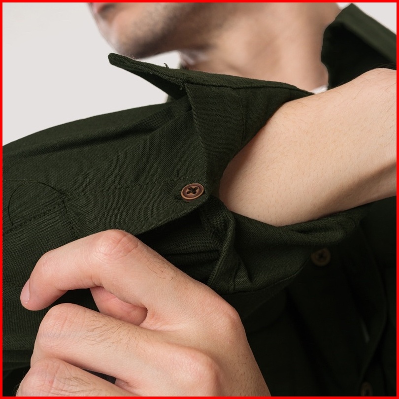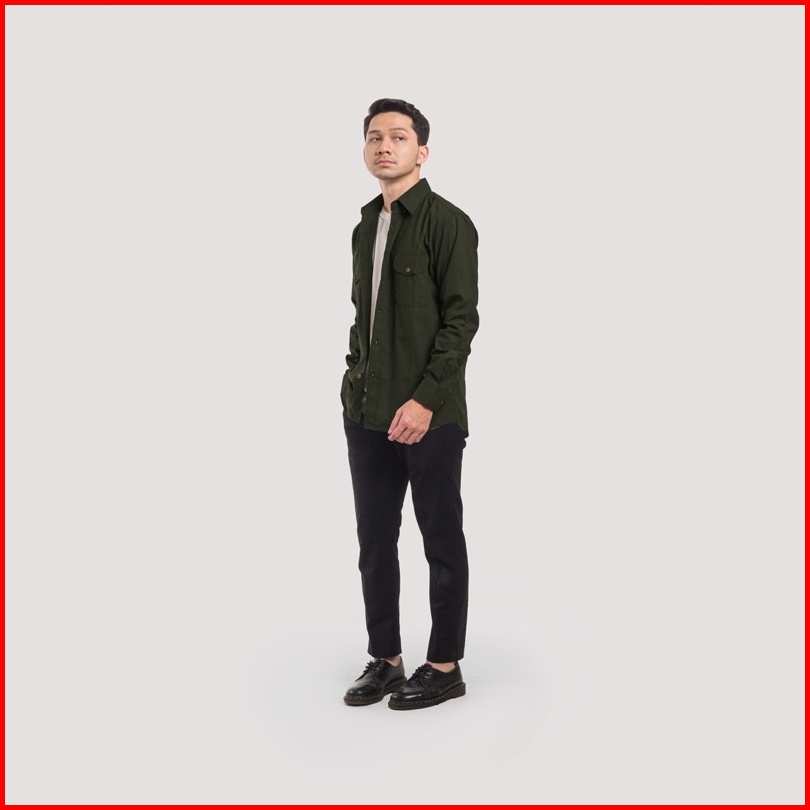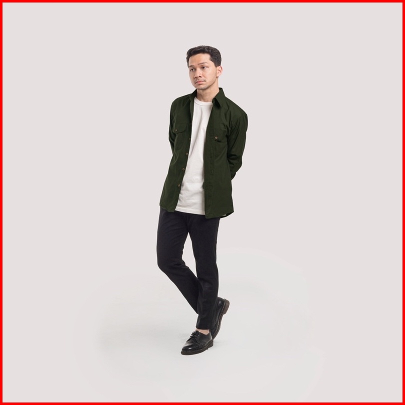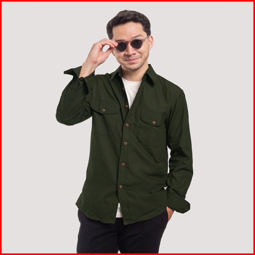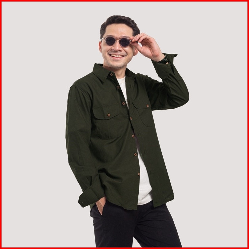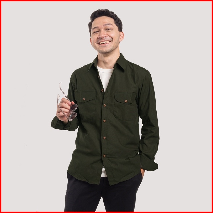 Kemeja Polos Pria Woodcutter Basic Work Shirt Olive Green - Double Pocket Kantong 2
