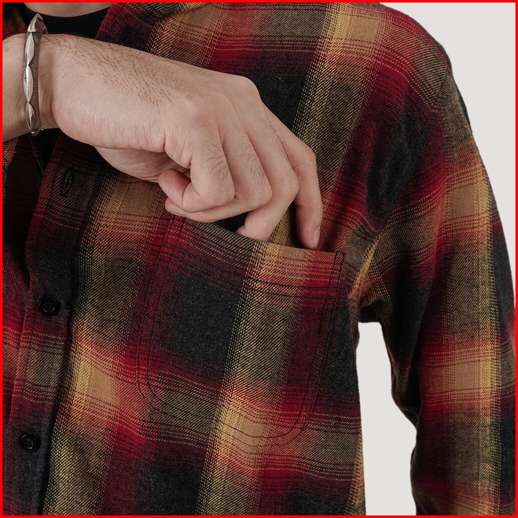 Kemeja Flanel Pria Woodcutter Dorm Scatola Flannel Shirt Lengan Panjang