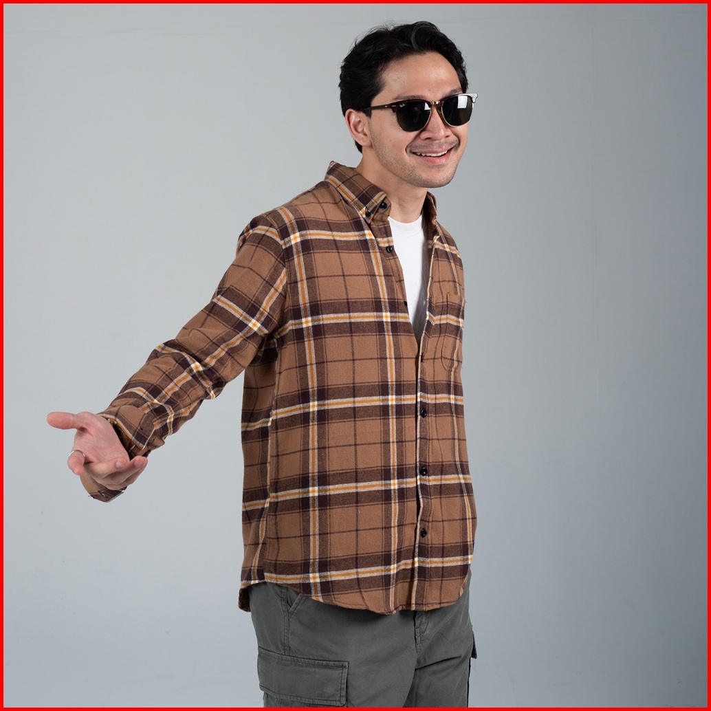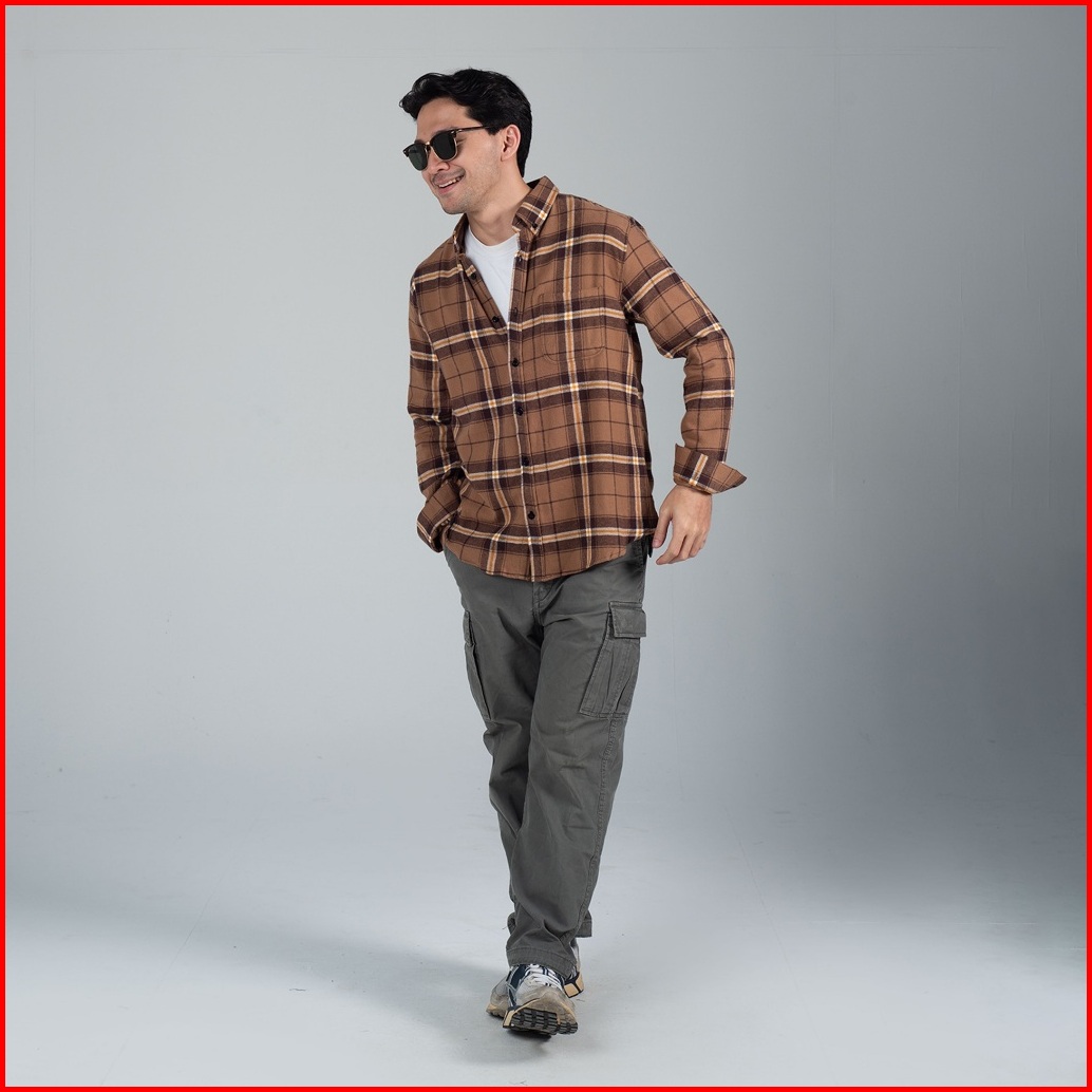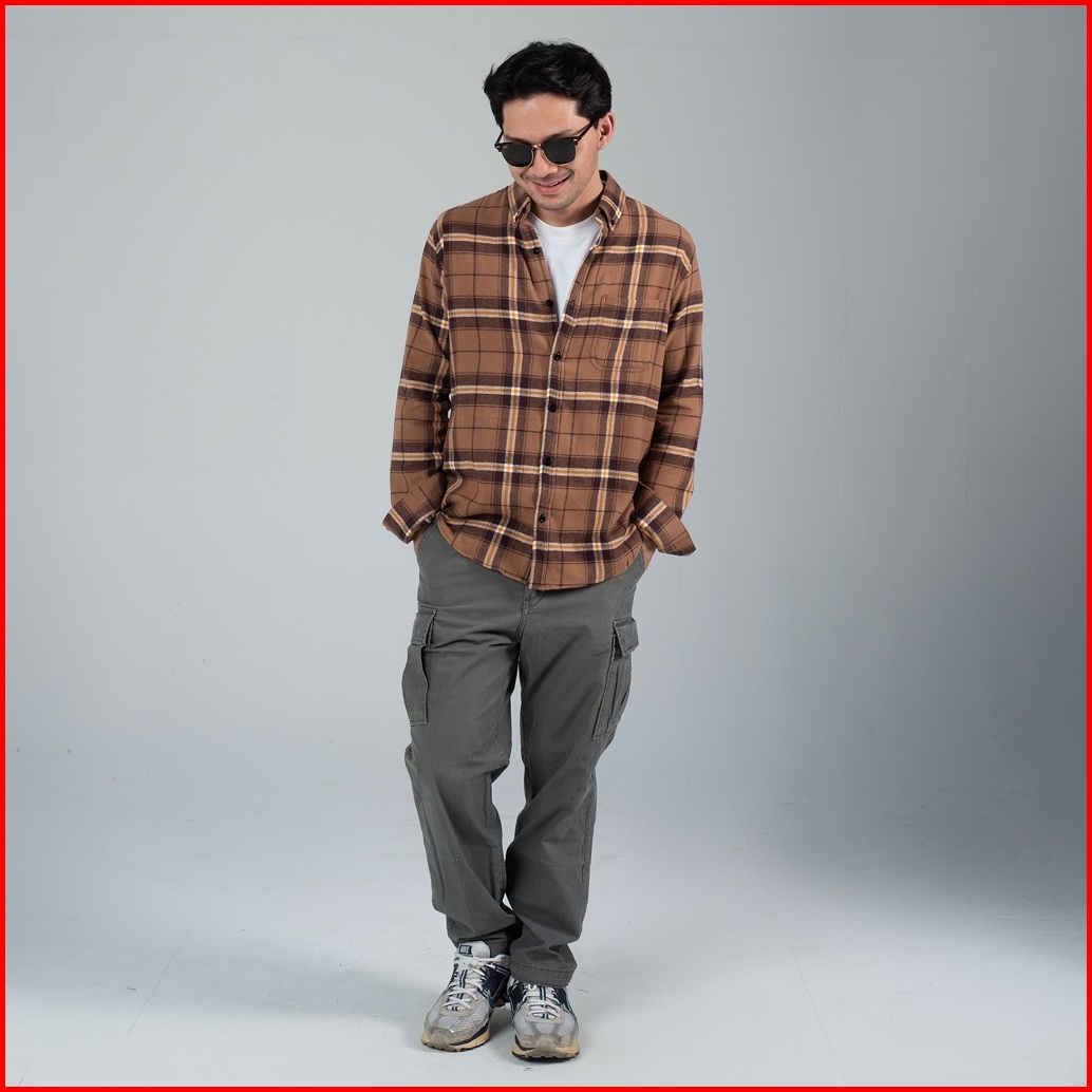 Kemeja Flanel Pria Woodcutter Travertine Brown Flannel Shirt Lengan Panjang