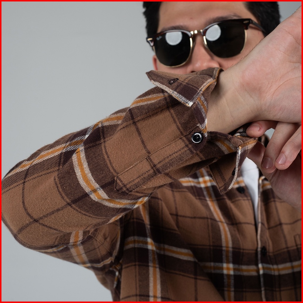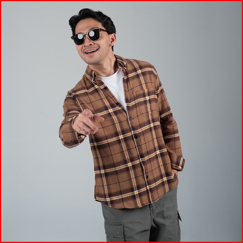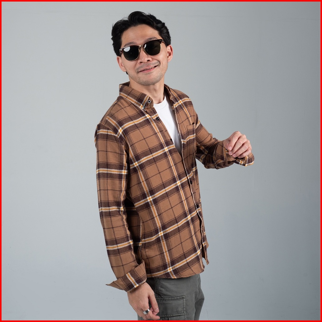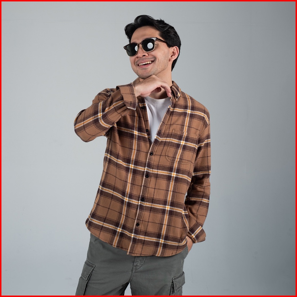 Kemeja Flanel Pria Woodcutter Travertine Brown Flannel Shirt Lengan Panjang