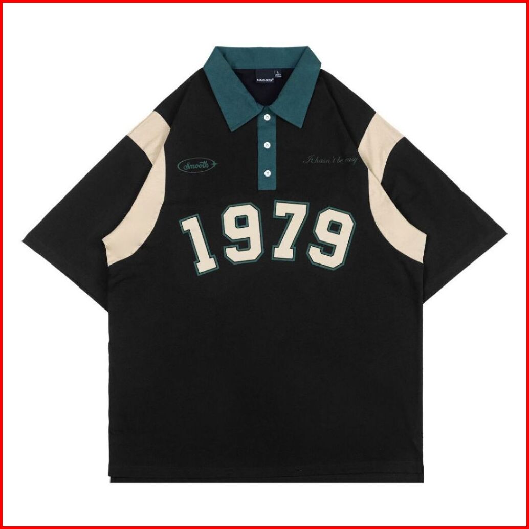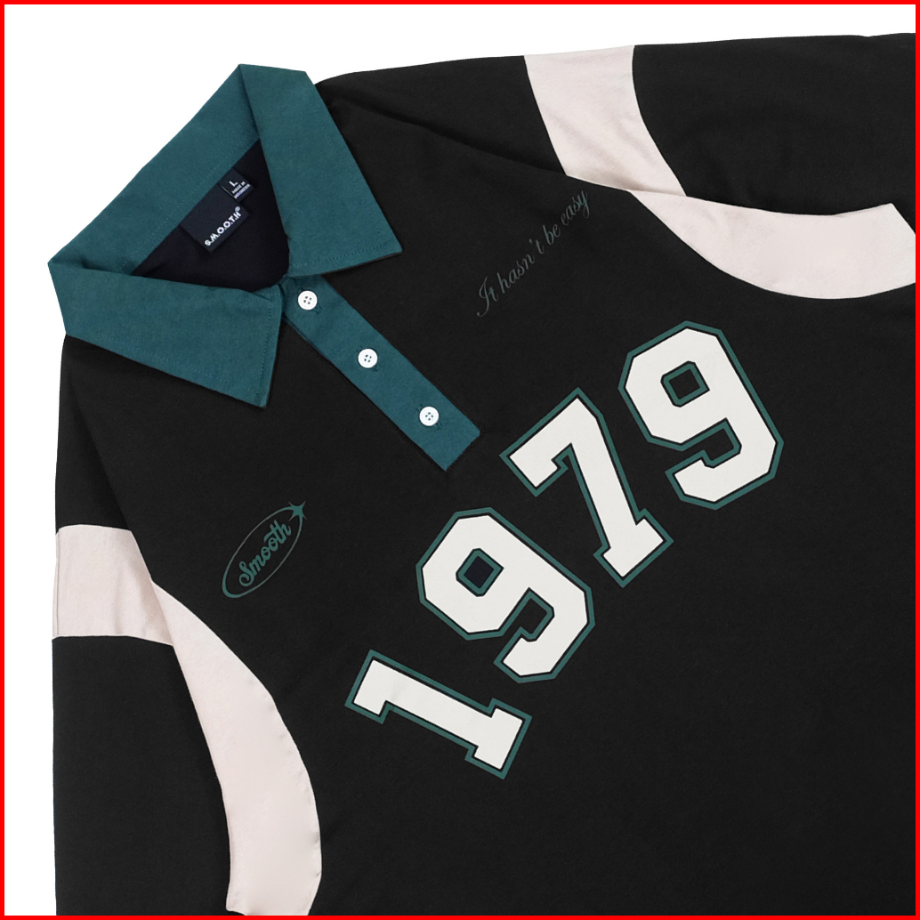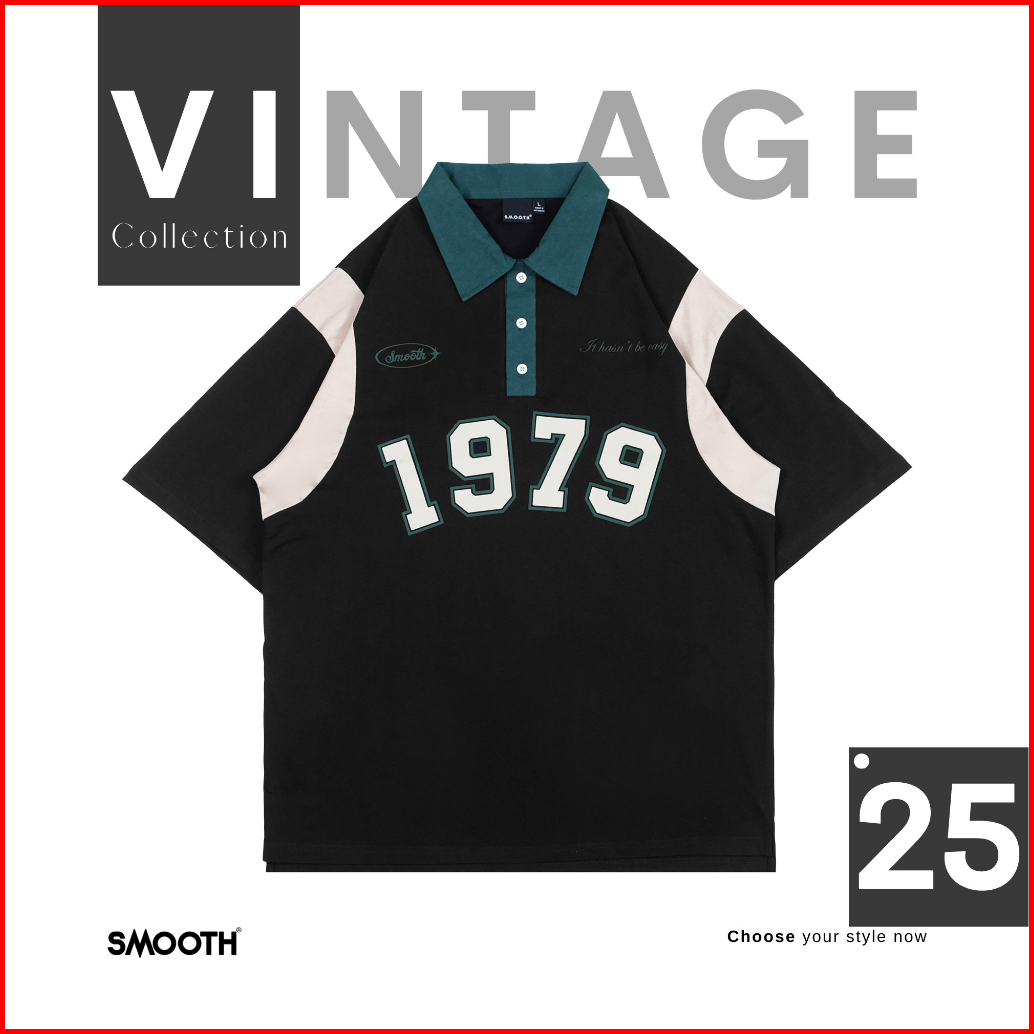 Smooth Basic Vintage Polo Oversized Shirt - Black Luzern 1979