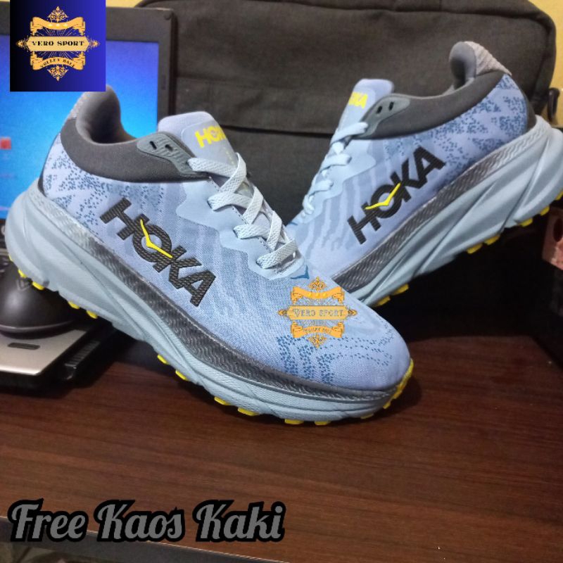 Sepatu Hoka CHALLENGER ATR 7 Gray Yellow Terbaru / Sepatu Running Pria Wanita / Sepatu Lari Hoka