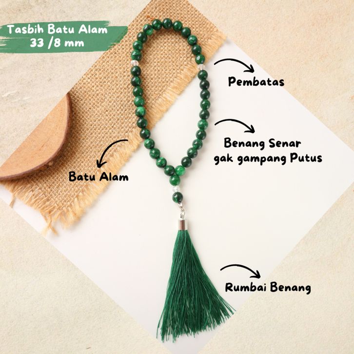 TASBIH BATU ALAM RUMBAI / 33 BUTIR / 8 MM ASLI NATURAL