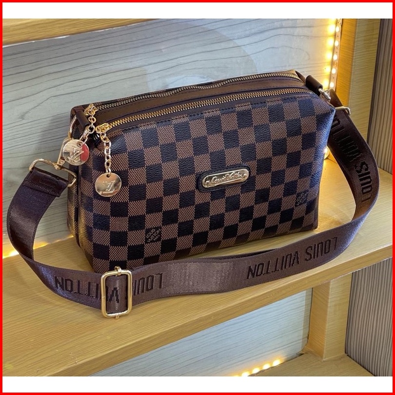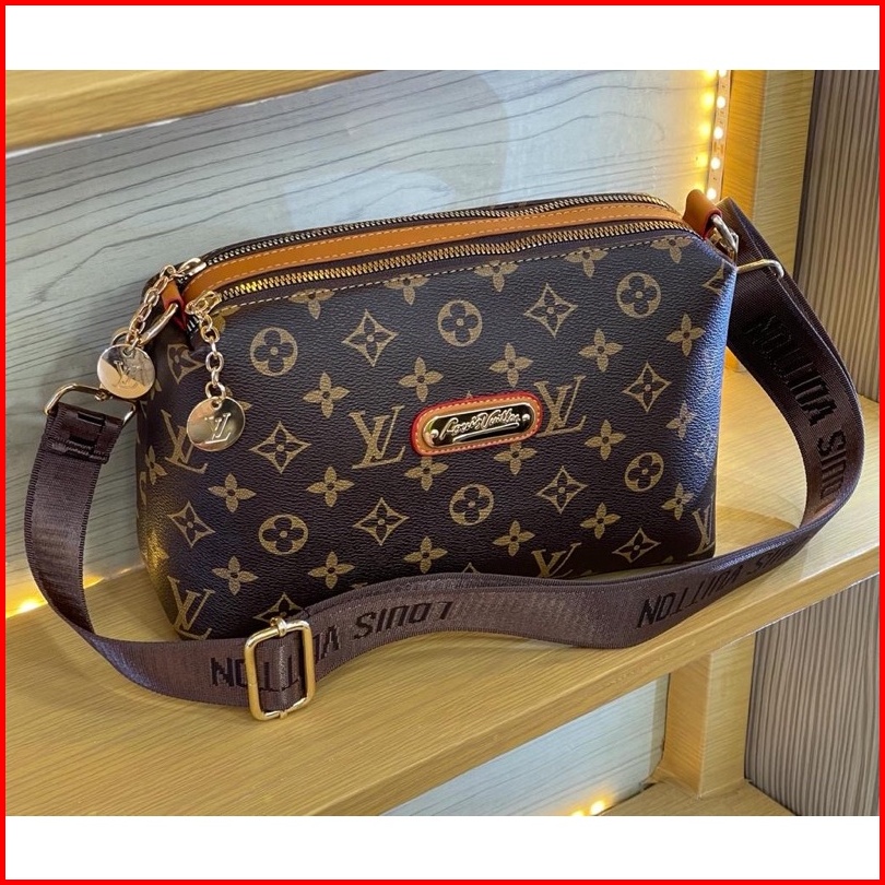Tas Sling 2ruang Flat Double Ziper Koin Uk 25x16cm Promoooo Kode 9898