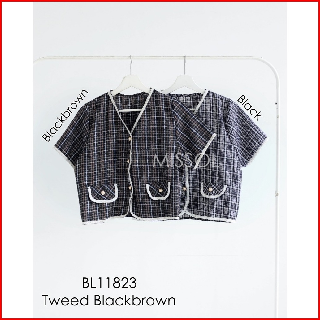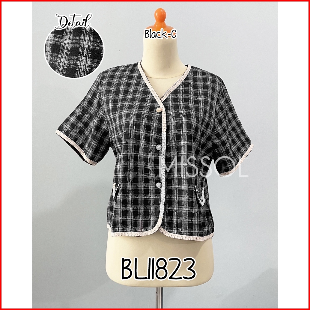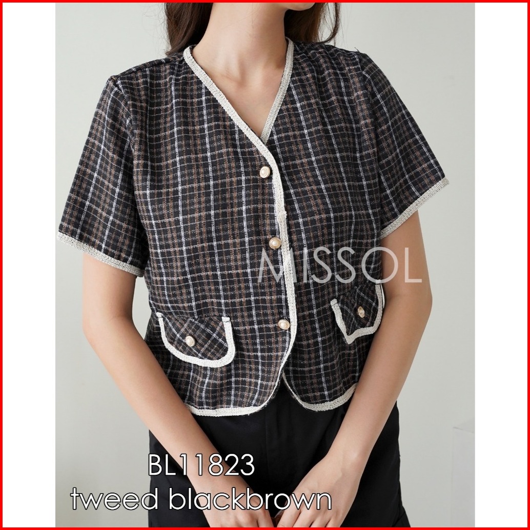 Missol Korean Tweed Blouse V Neck Korea Premium 11823 Bl11823