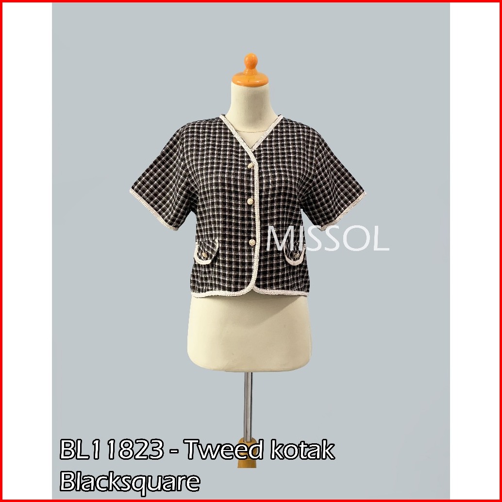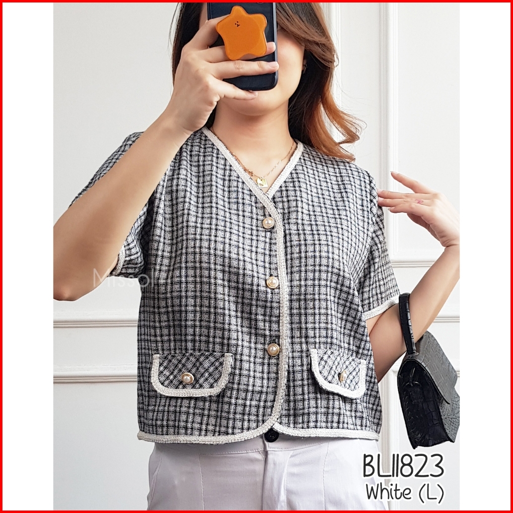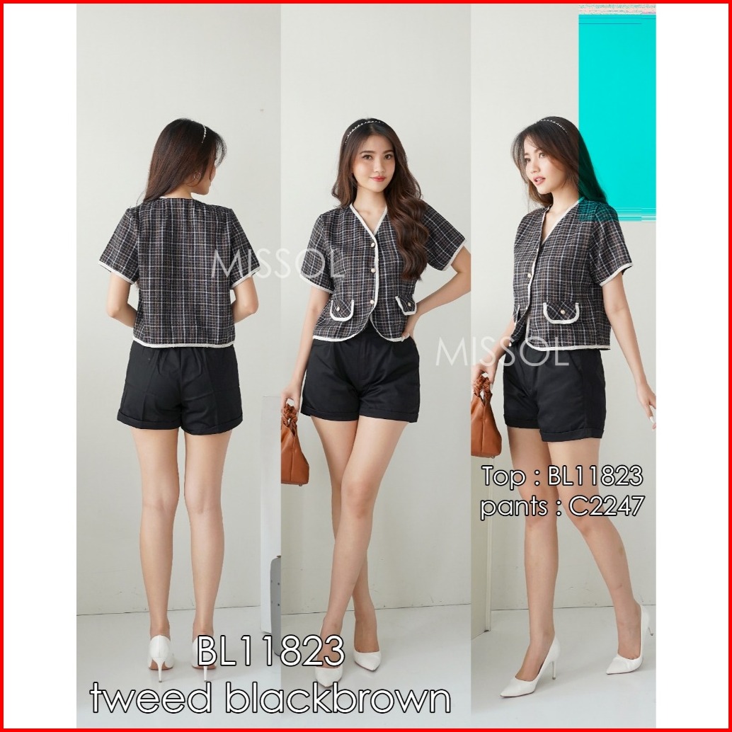 Missol Korean Tweed Blouse V Neck Korea Premium 11823 Bl11823