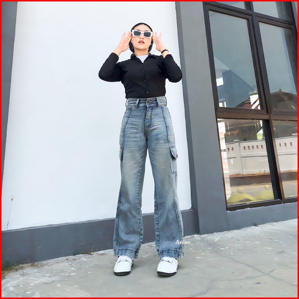 Jiniso - Highwaist Cargo Hands Up Jeans Vol. 2