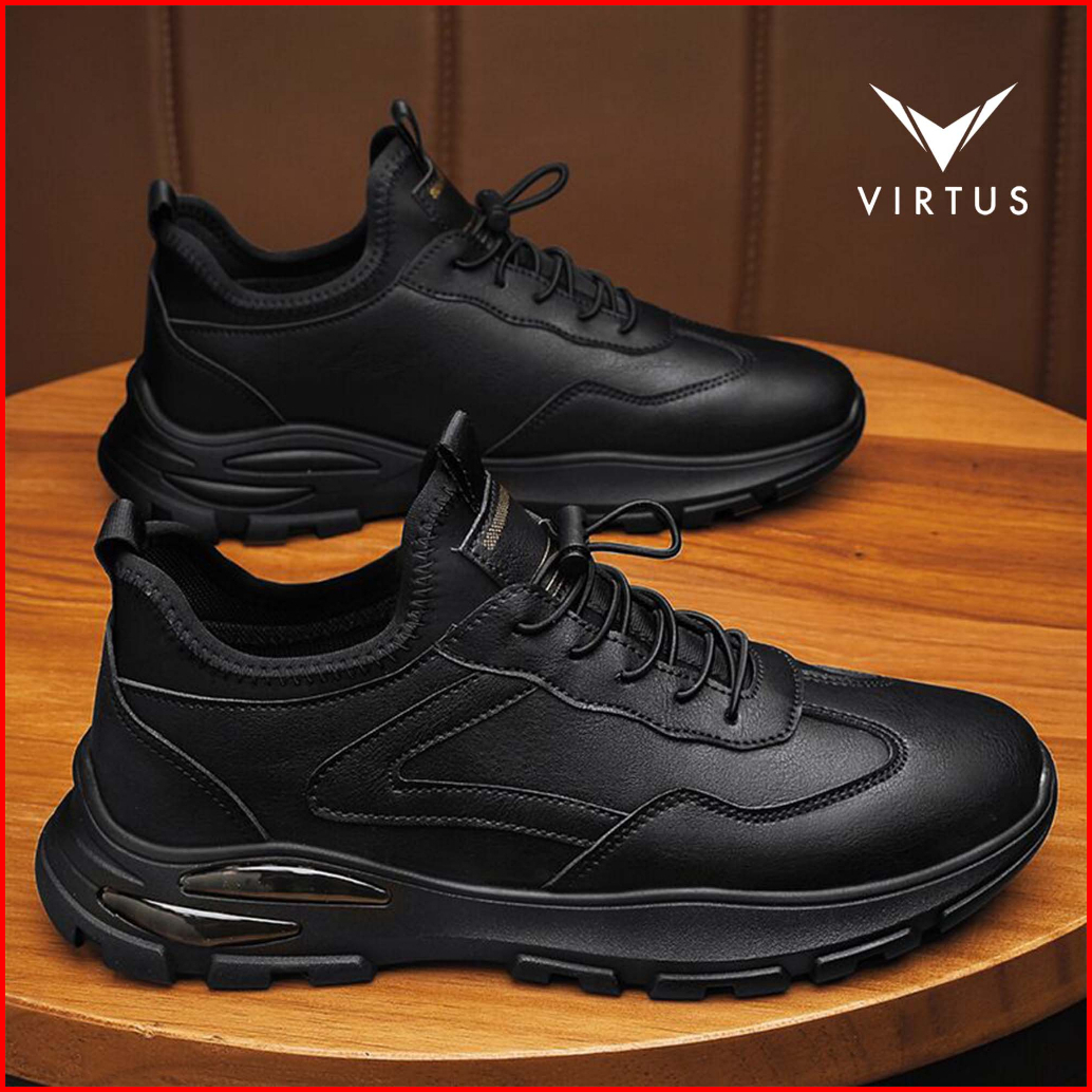 Virtus Wear 39 - 44 Bolt Black Hitam - Sepatu Sneakers Pria Olahraga Running Casual Shoes Lari Tali Sekolah Casual