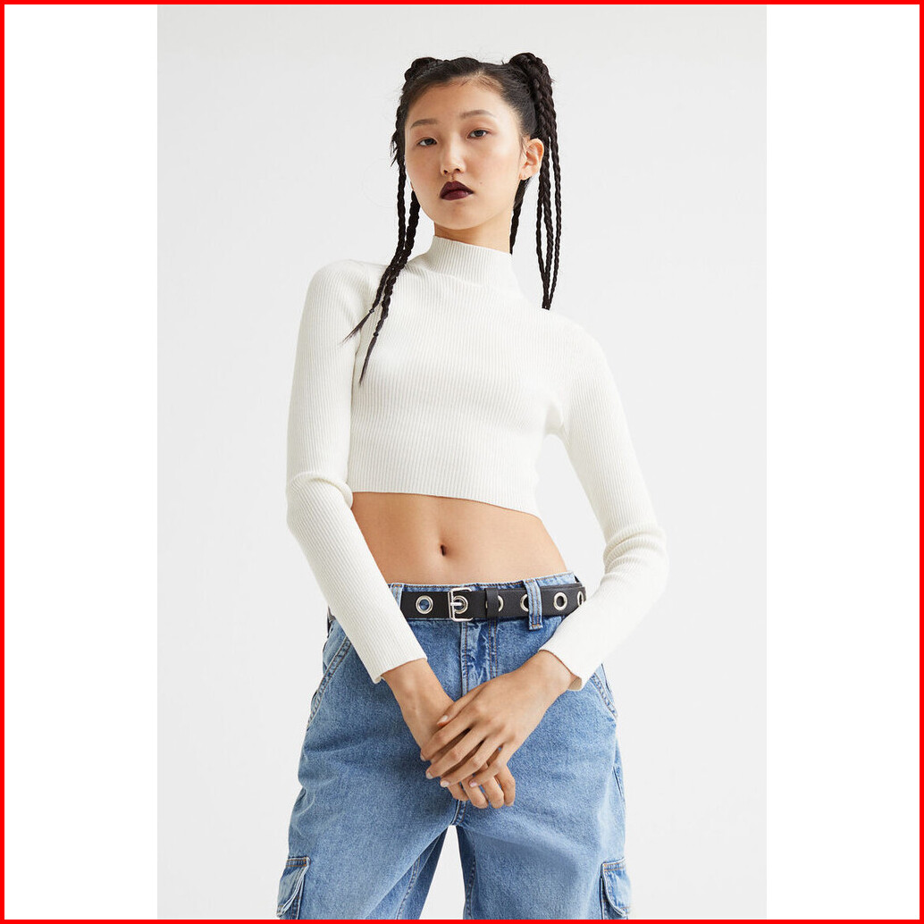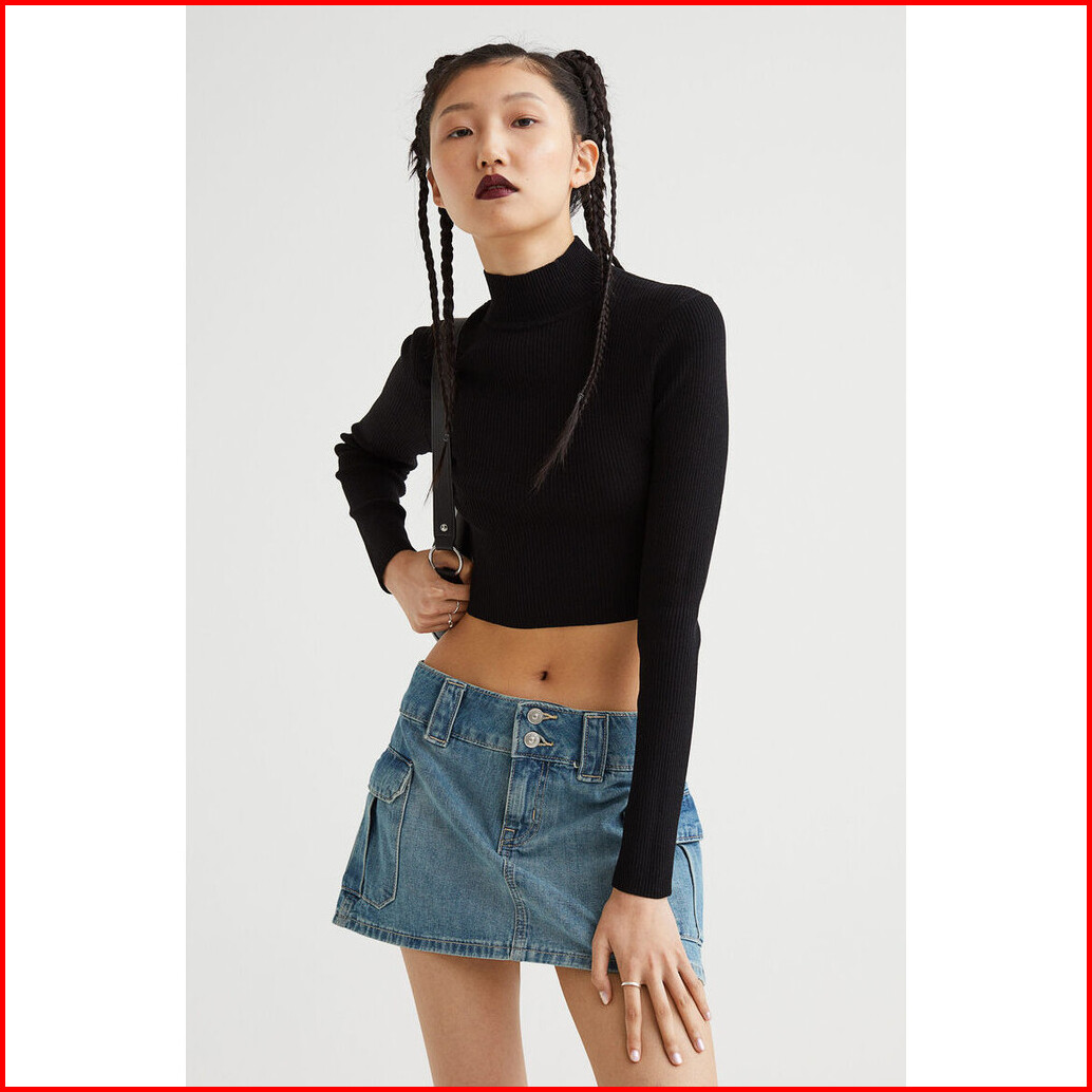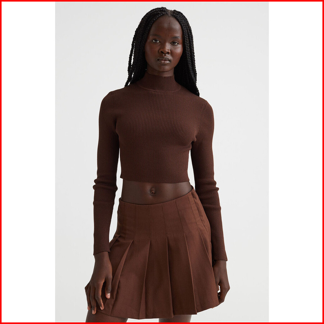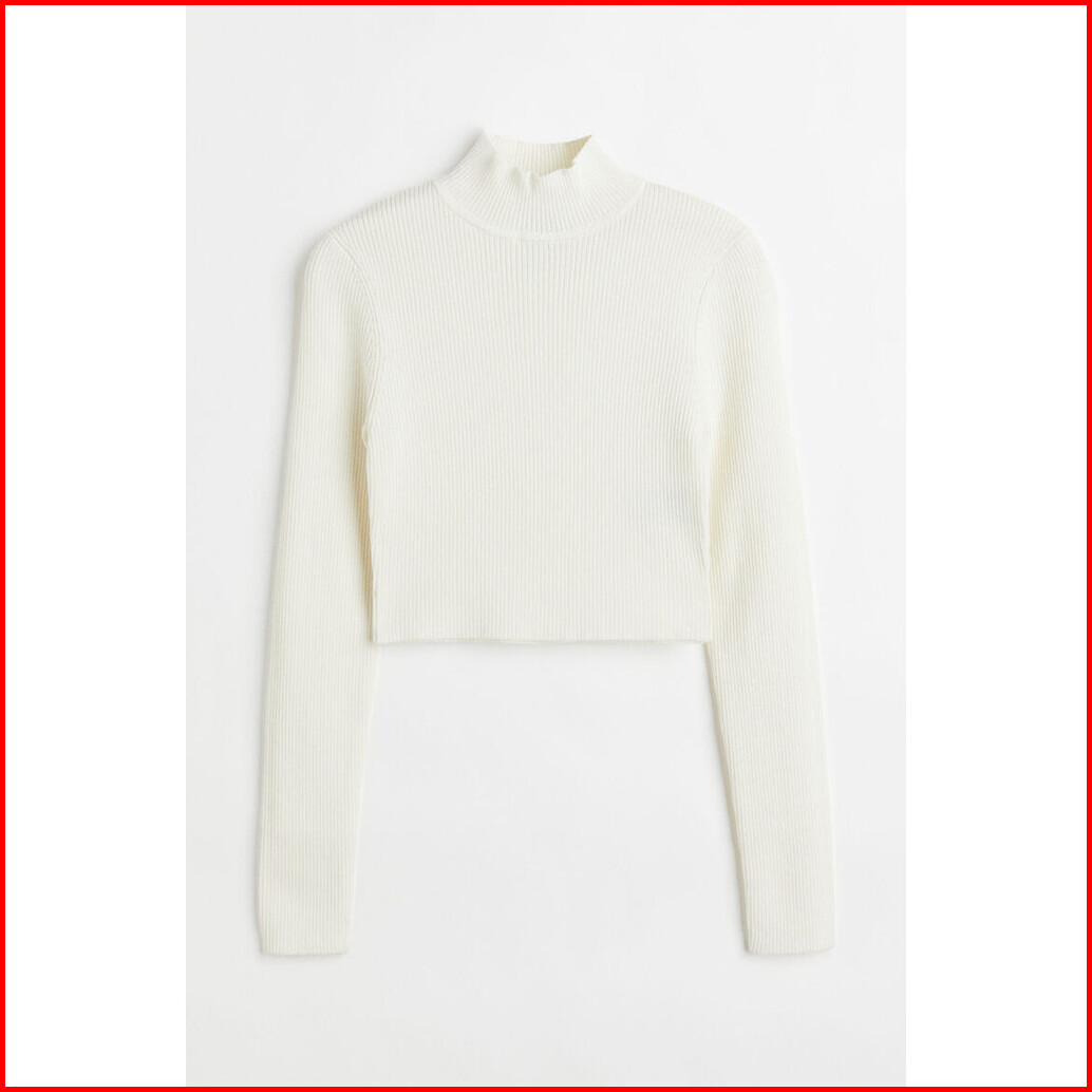 H M Wanita Ribbed Turtleneck Top