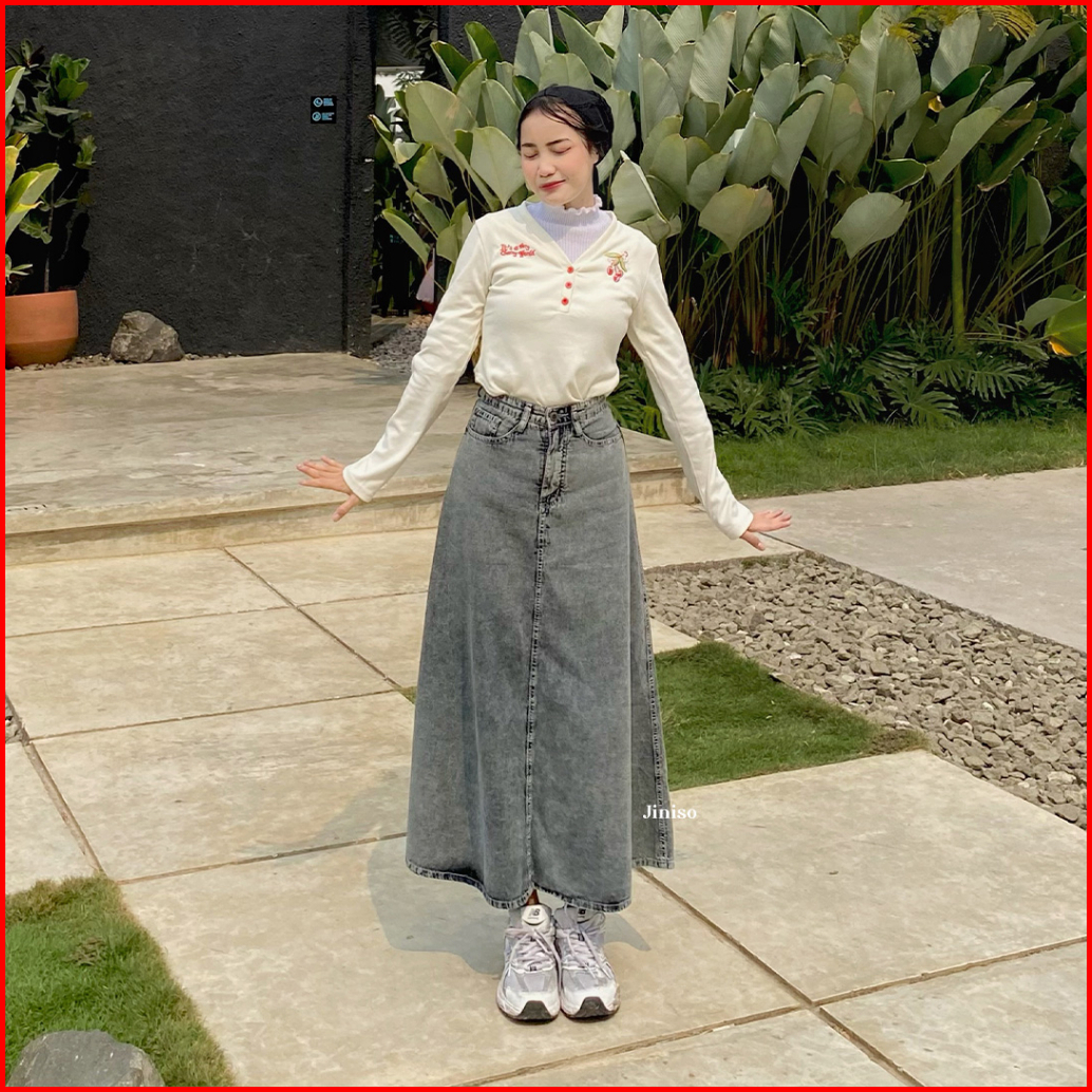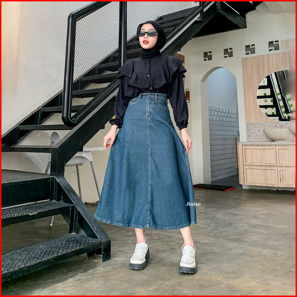 Jiniso - Highwaist Rok Basic Seventy Jeans Panjang