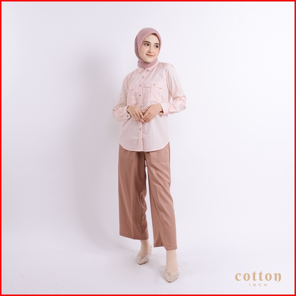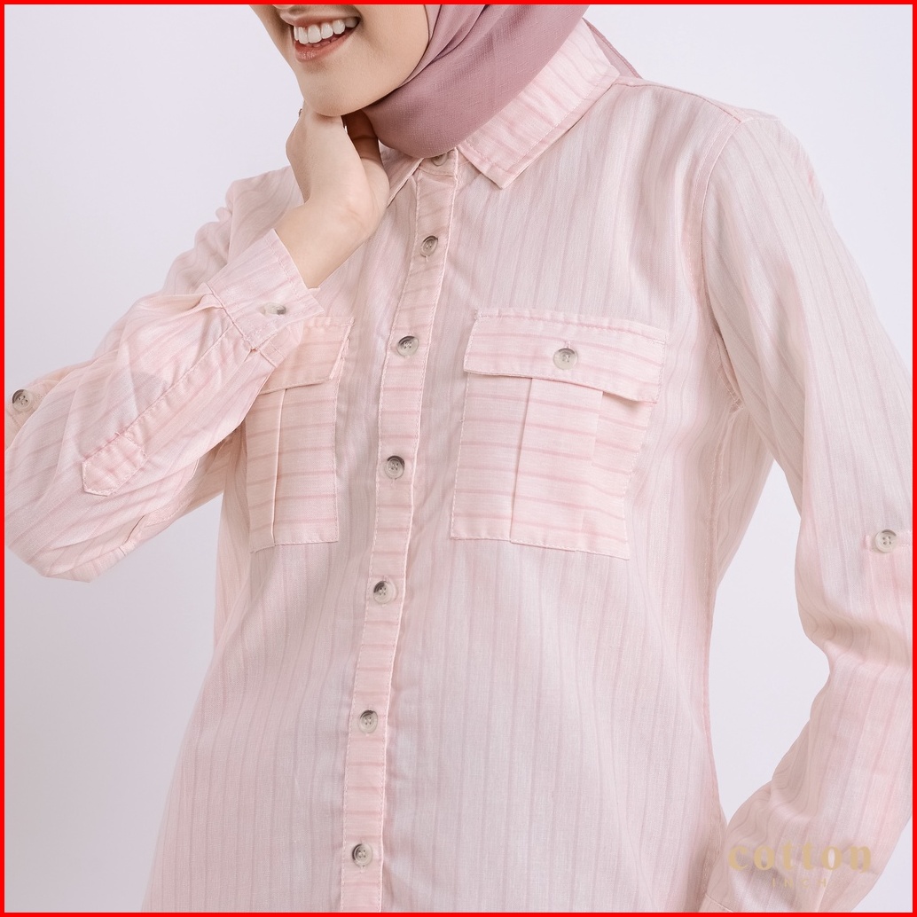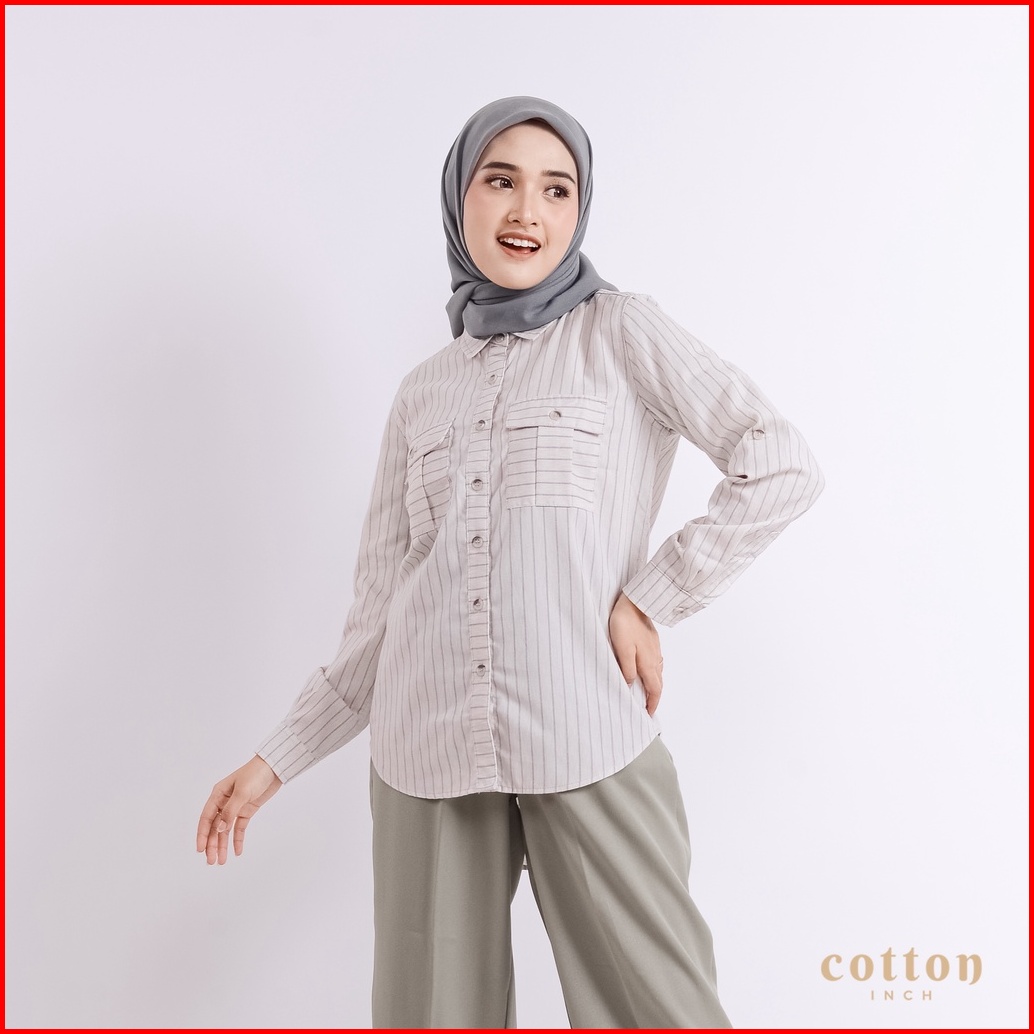 Cotton Inch - Abigail Shirt Kemeja Motif Salur Wanita Sarimbit Sister