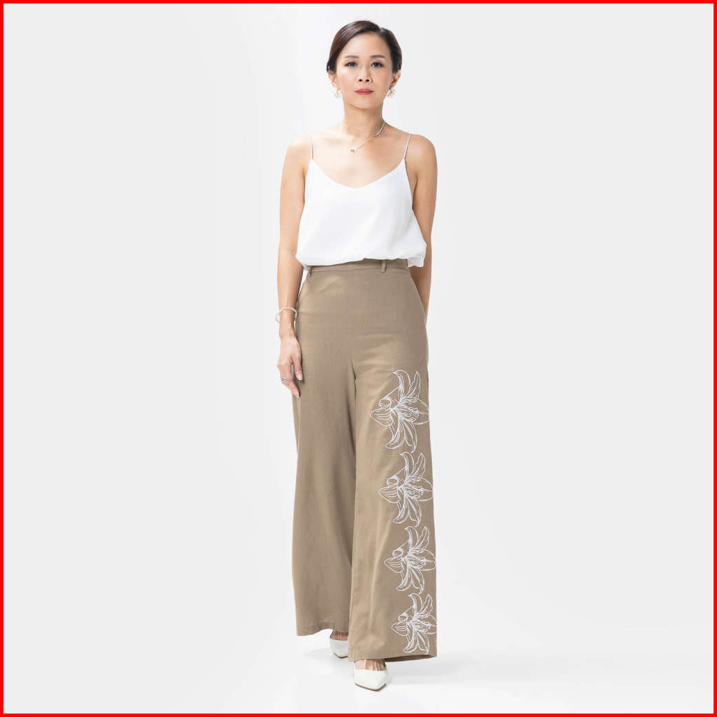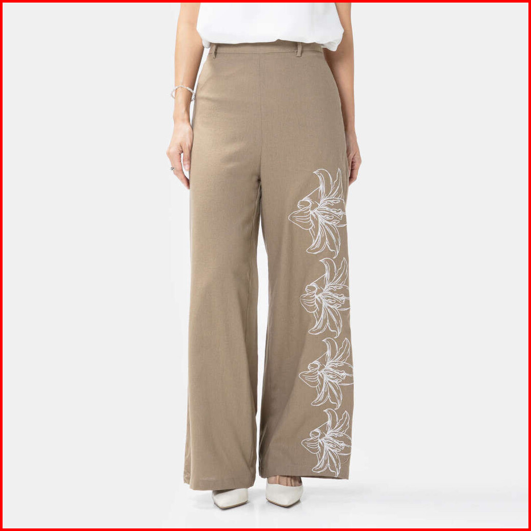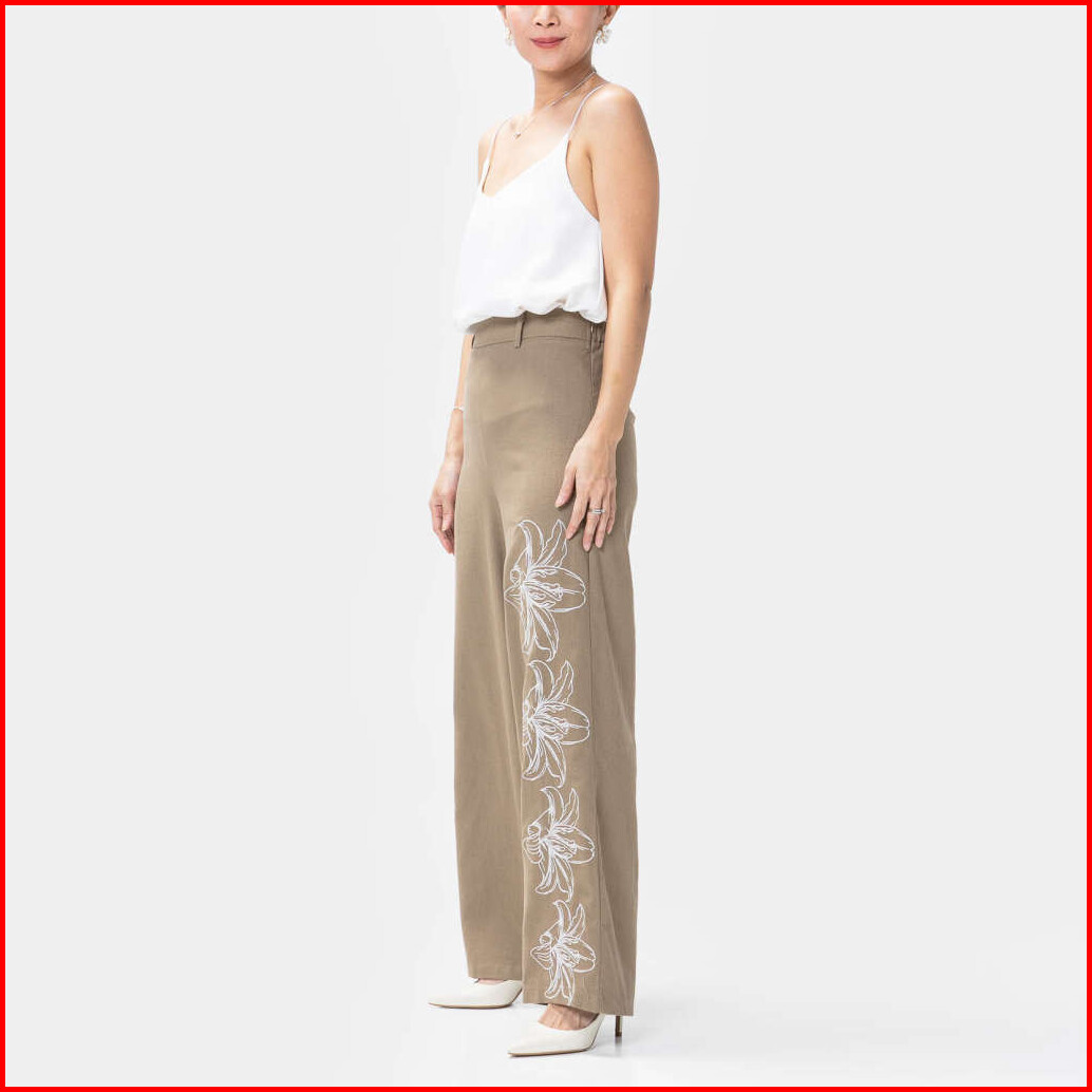 Alicia Eva X This Is April Celana Panjang Wanita Kulot Floral Montana Pants Brown - 289947