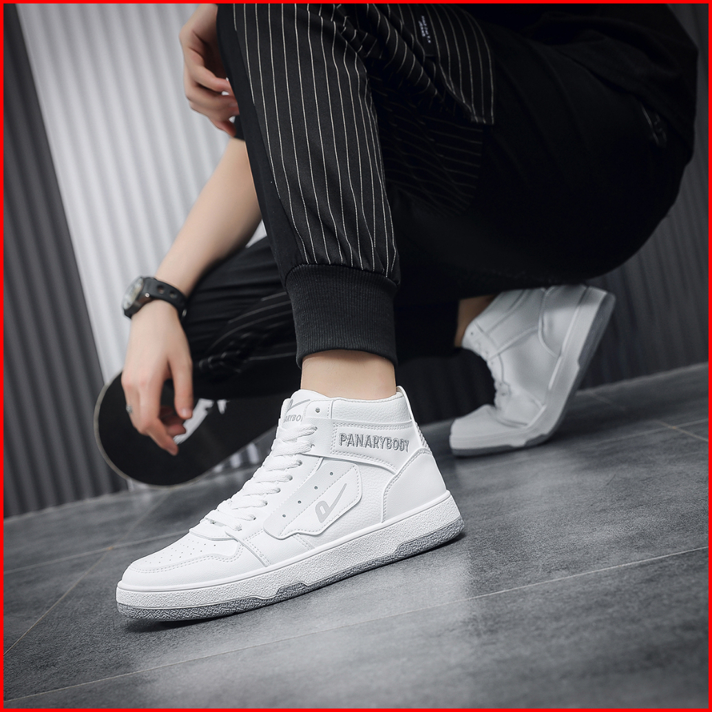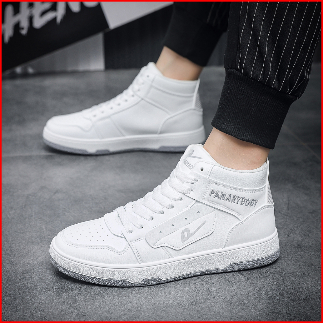 Sepatu Putih Pria Casual Modis Korean Style Sneakers Sepatu Cowok Pelajar Bertali Motif Kece