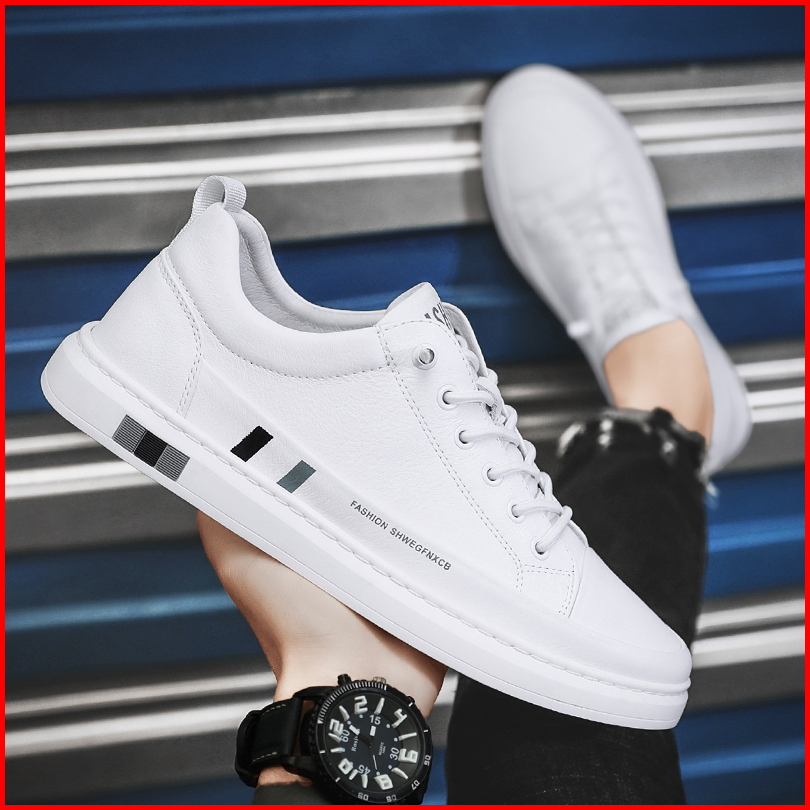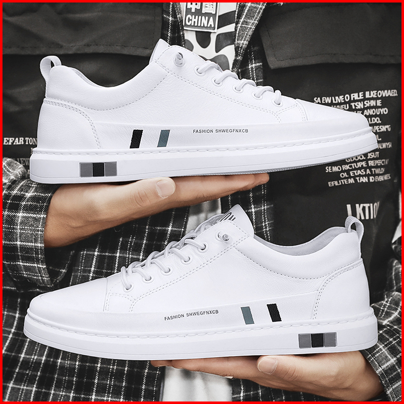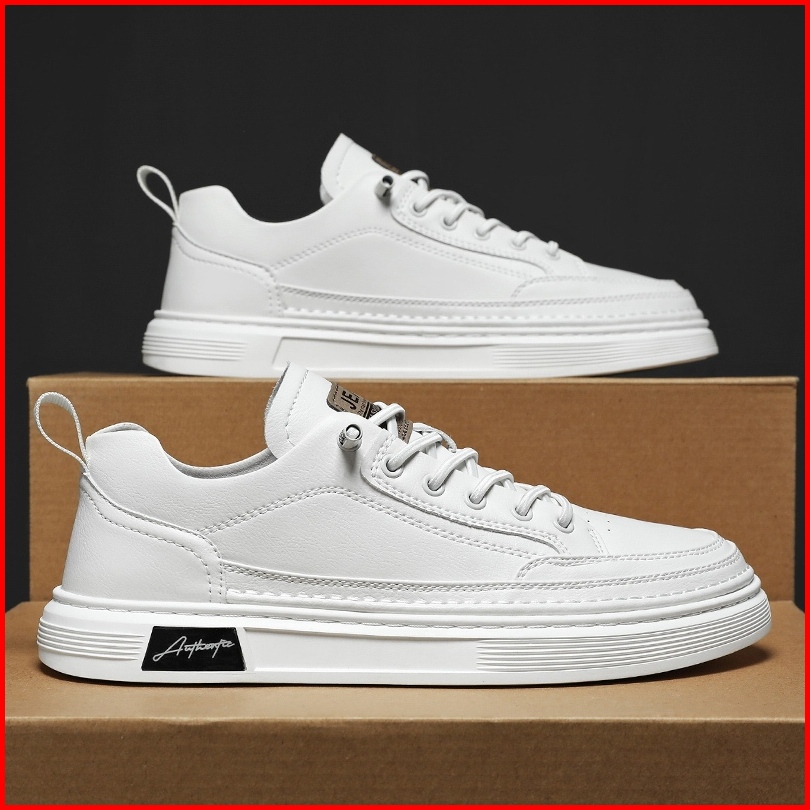 Sepatu Sneakers Pria Putih Premium Sepatu Kulit Santai Kerja Olahraga Import Original Multifungsi