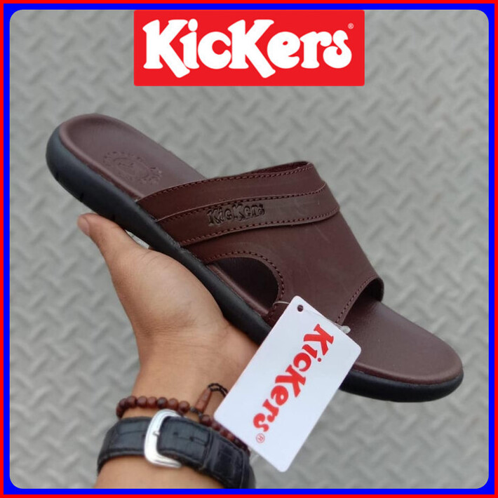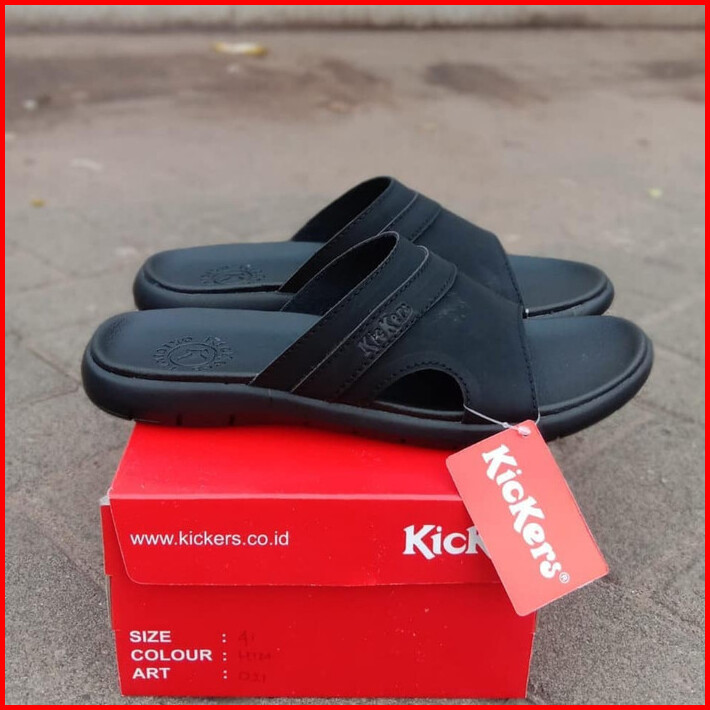 Sandal Kickers Pria Kulit Asli - Sandal Kulit Asli - Sandal Selop Pria - Hitam 42