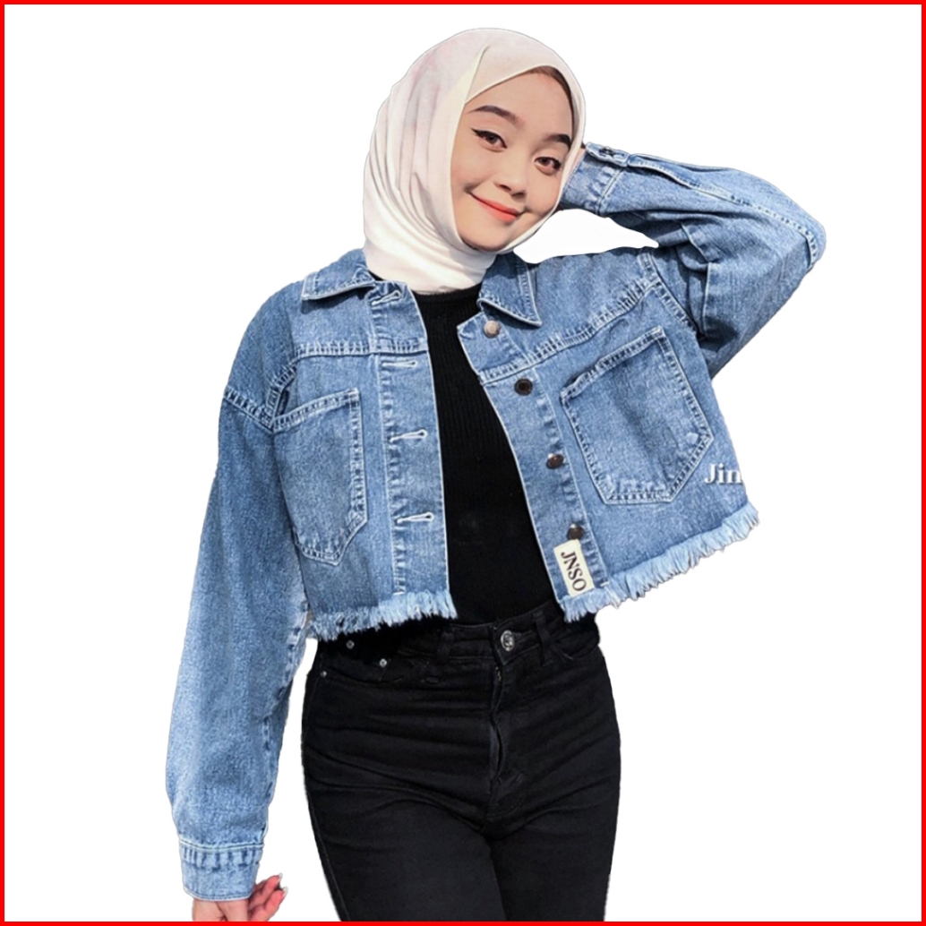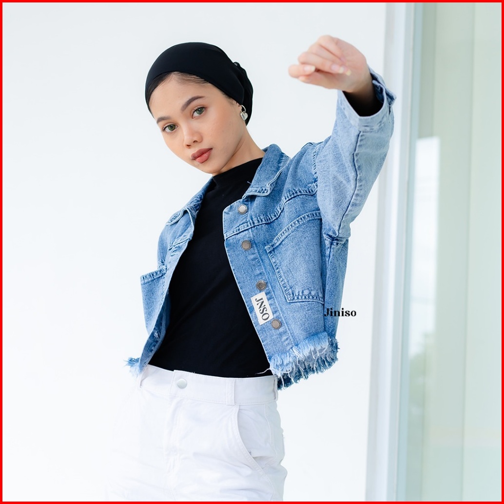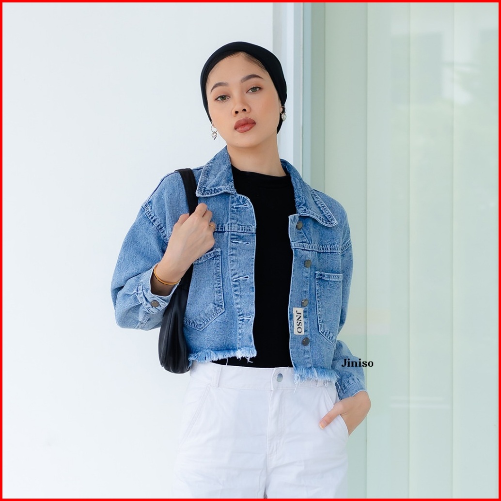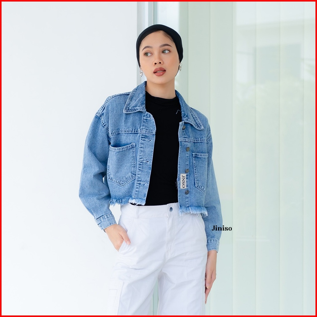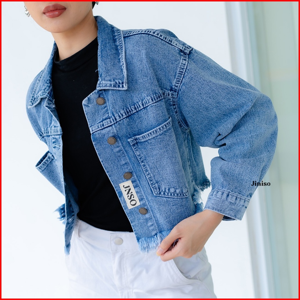 Jiniso Jaket Crop Jeans Pocket Raw Blue Acid