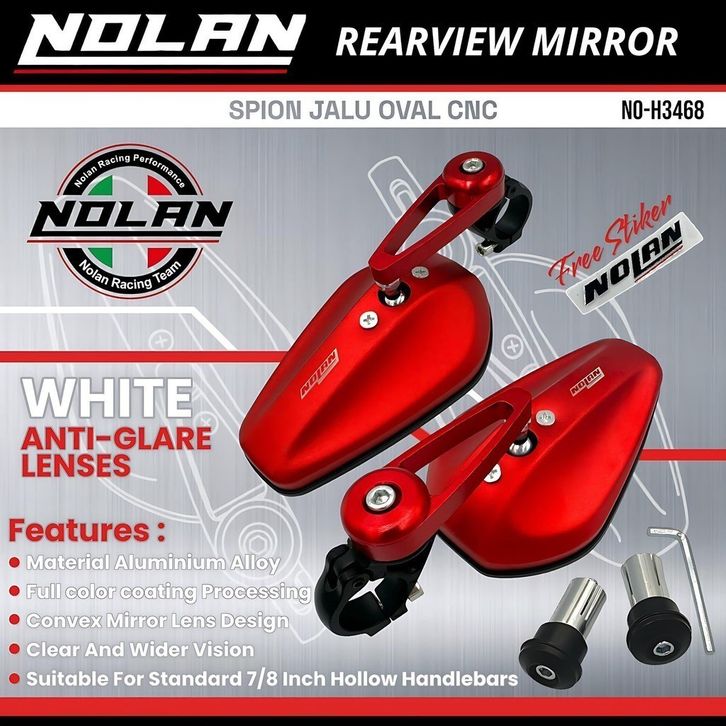 Spion Motor Variasi Spion Jalu OVAL NOLAN Full Color Kaca Putih Universal Bahan CNC