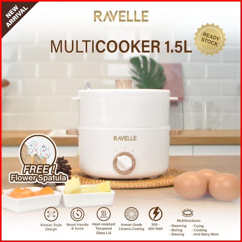 Ravelle Panci Masak Listrik Serbaguna Alat Masak Multifungsi Multicooker 1.5l