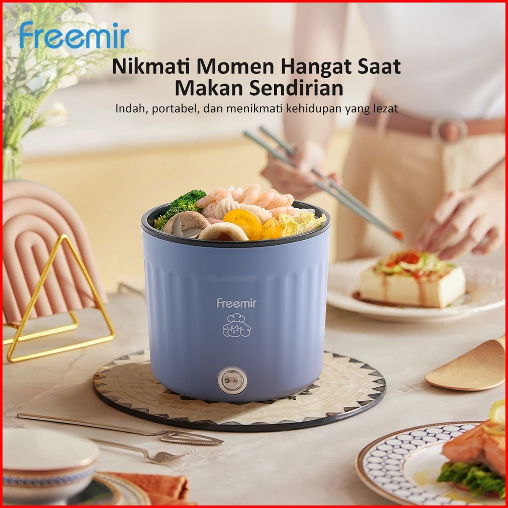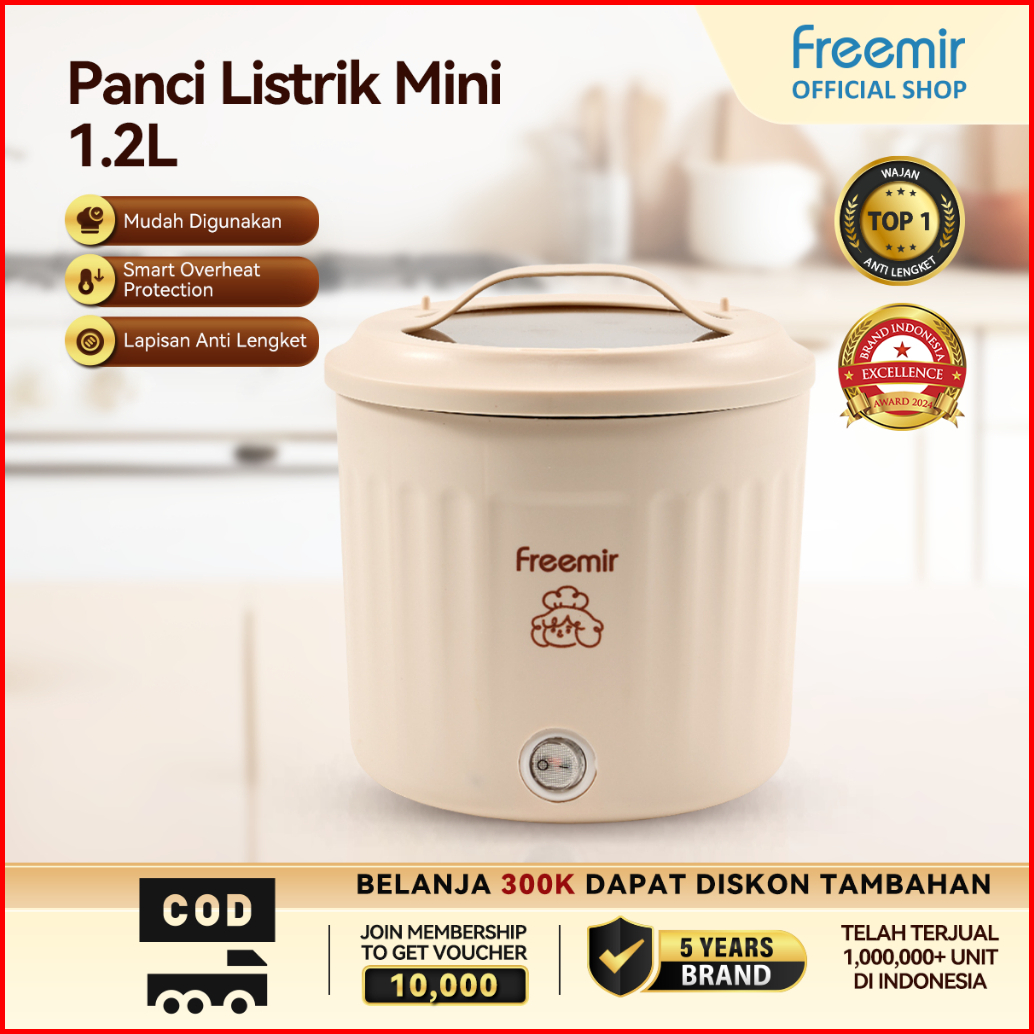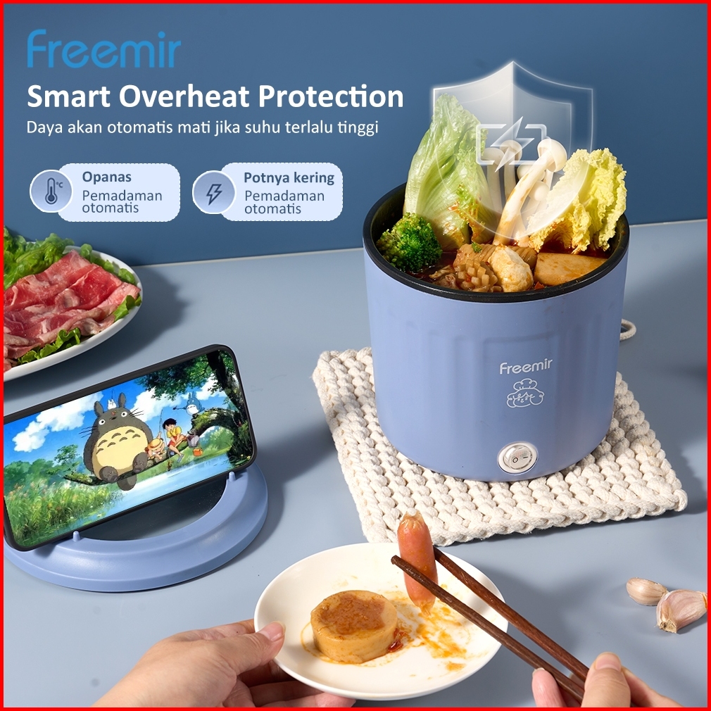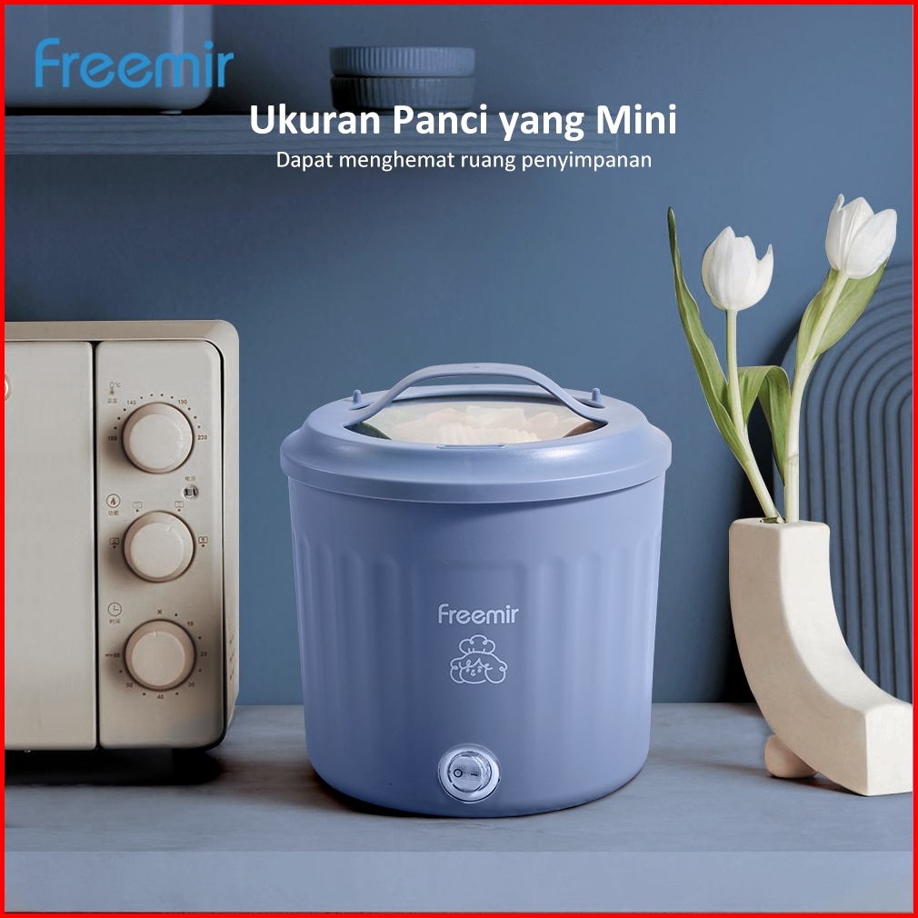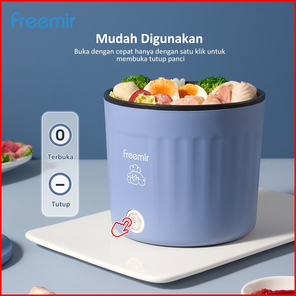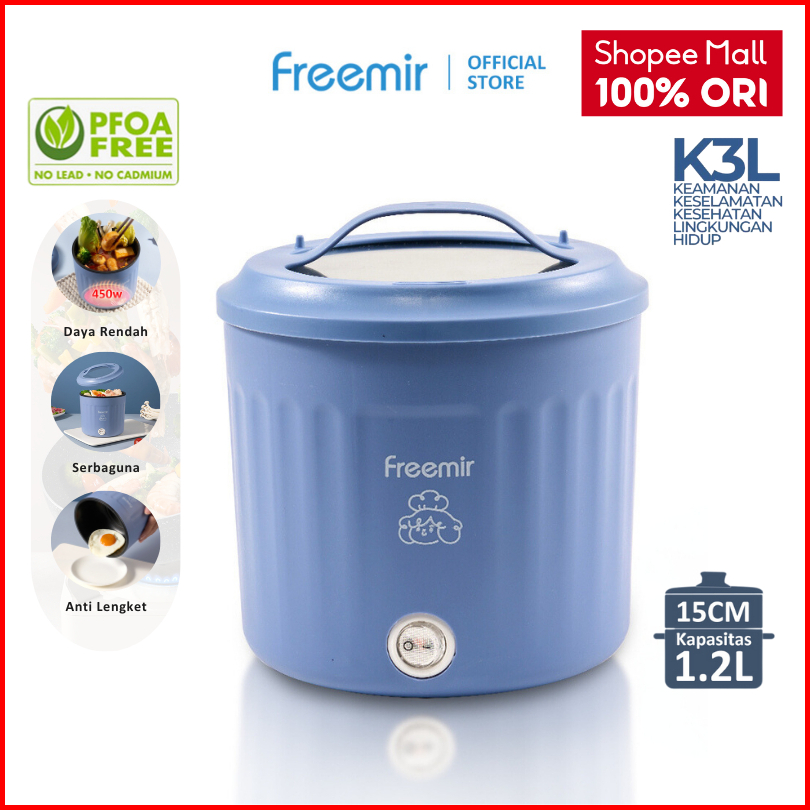 Mall Freemir Panci Elektrik Ukuran 15cm Kapasitas 1.2 L 450 W Tombol Otomatis Warna Biru Beige Serbaguna