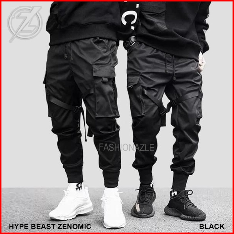 Celana Jogger Pants Hypebeast Pria Zenomic Black Techwear Cyberpunk Cargo Pocket Original Keren Hip Hop Dance Avolet Ver