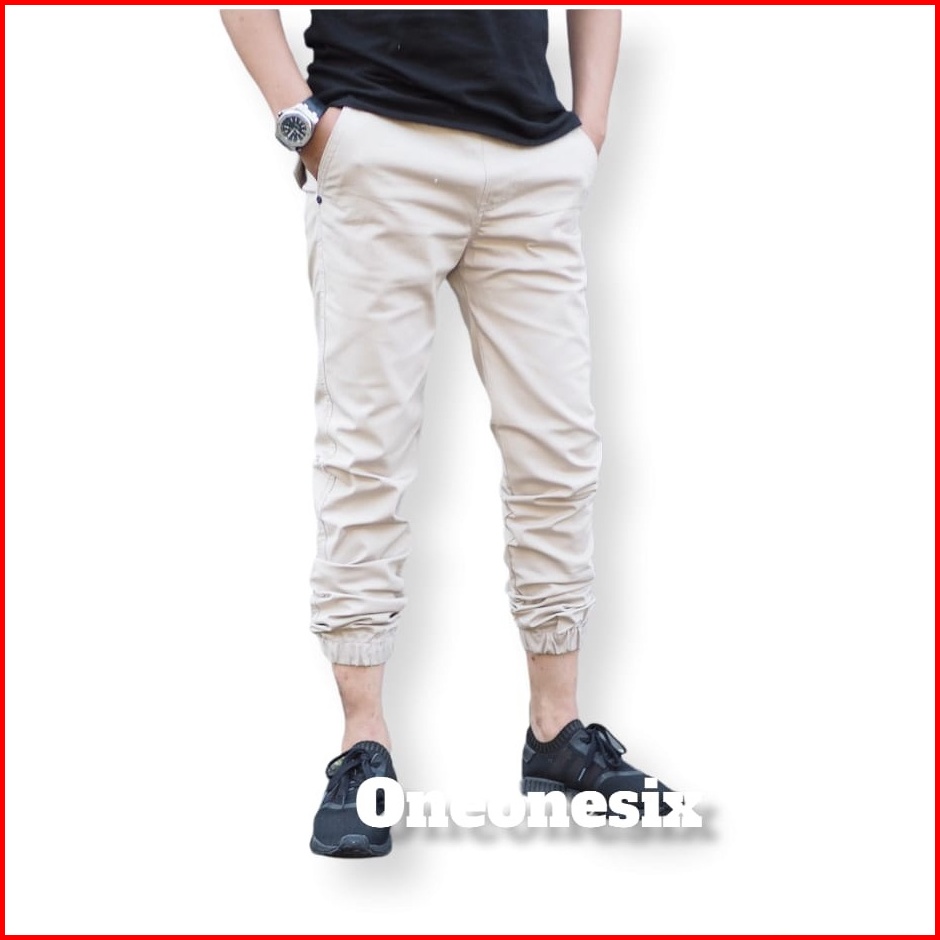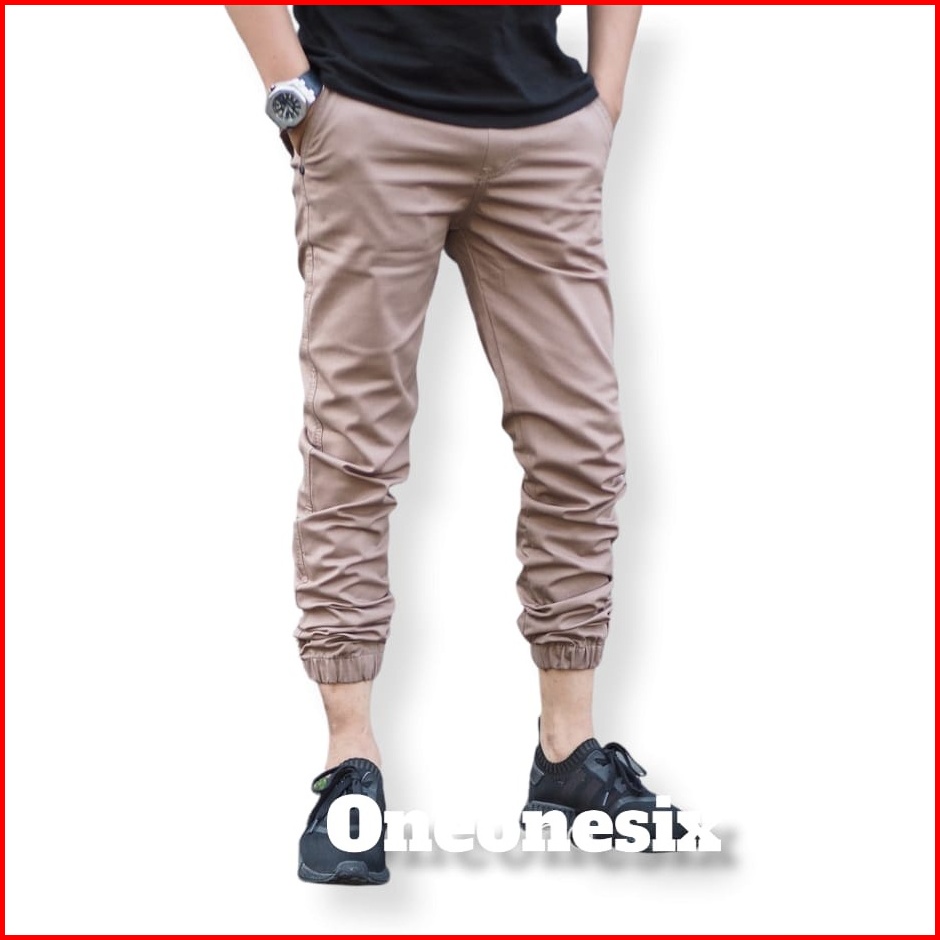 Celana Panjang Jogger Chinos Pria Wanita Premium Joger Chino Polos Bahan Katun Twill Ngaret Melar