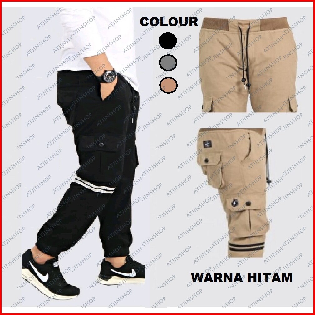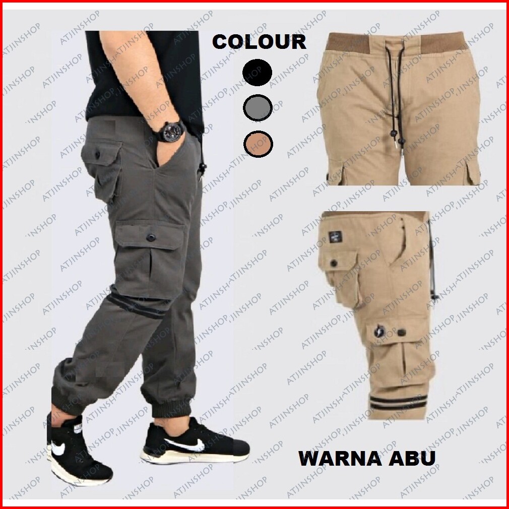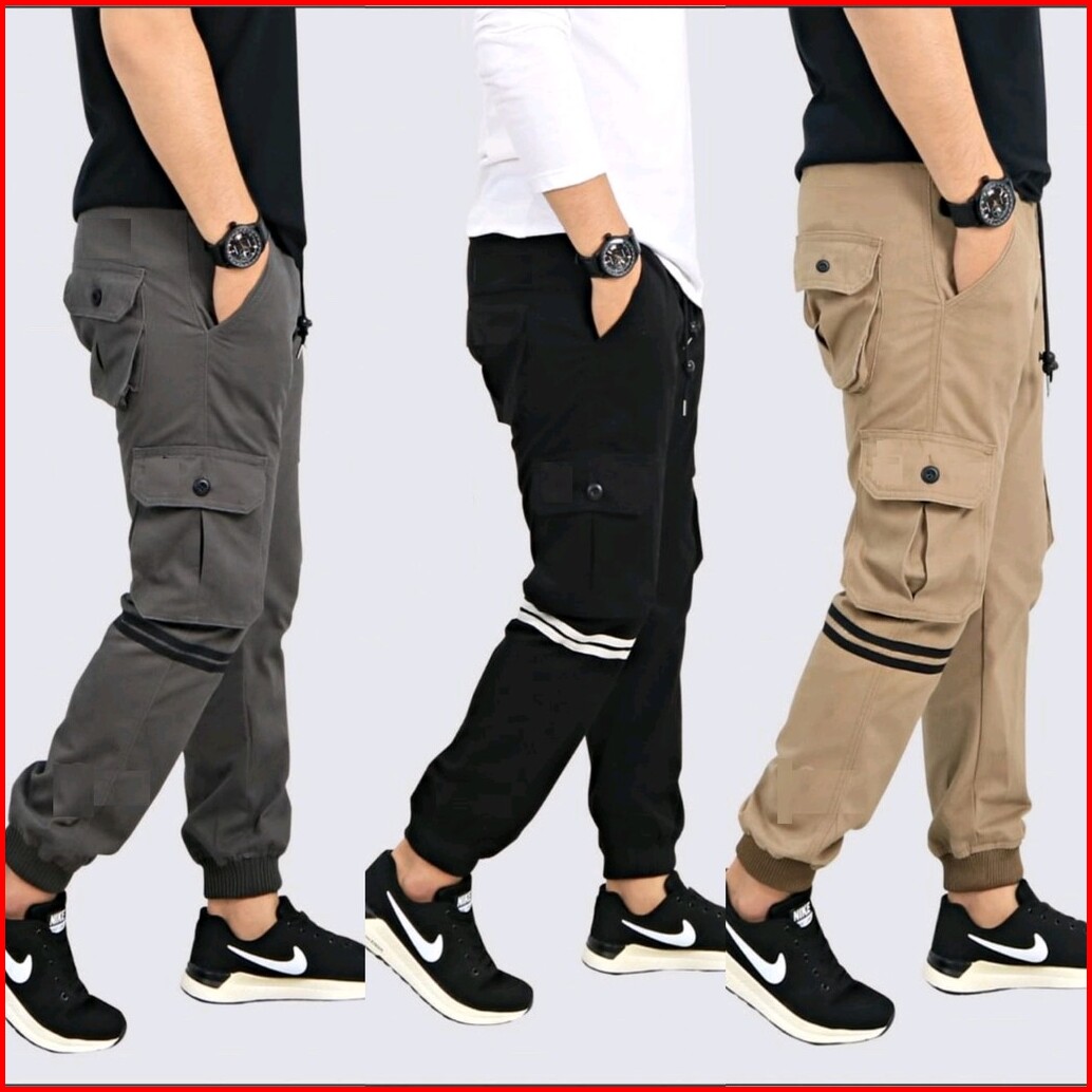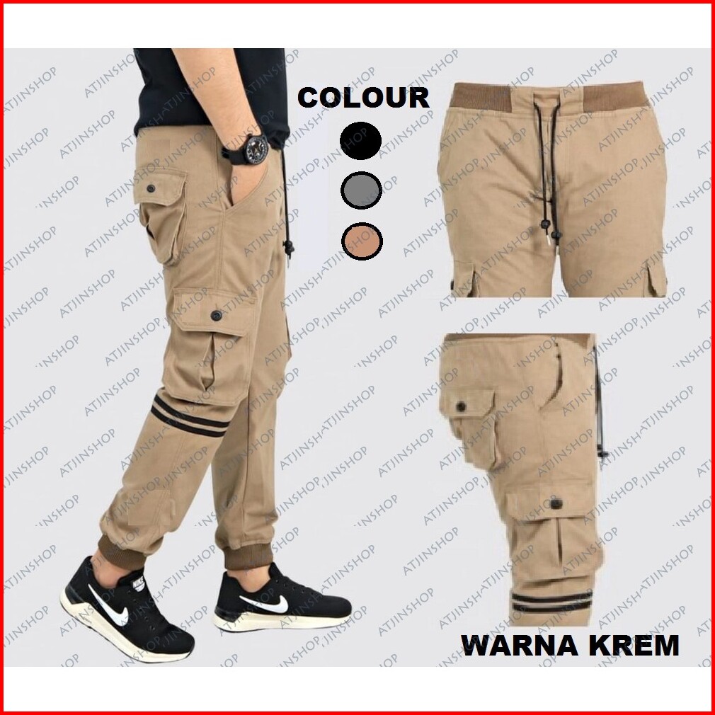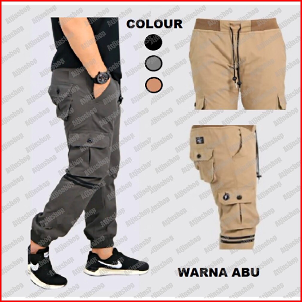 Atjin- Celana Joger Pria Tipe Kargo Kancing Bahan Katun Lembut 3 Warna