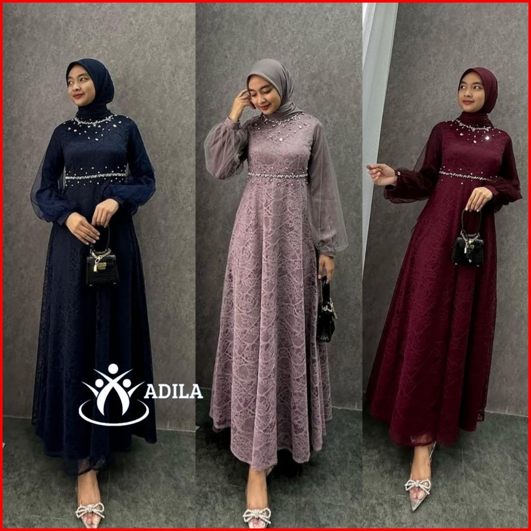 Gamis Terlaris Brukat Nadine Gamis Fashion Remaja Gamis Pesta Nikahan Size S M L Xl