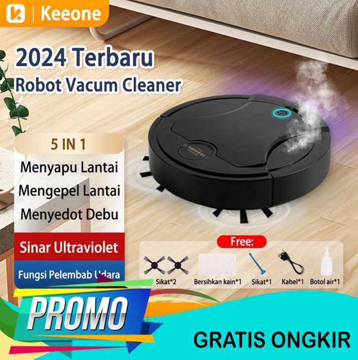 BARU Keeone Robot Vacum Cleaner 5 in 1 Portable Penyedot Debu Rumah Sapu Otomatis Robot Pembersih Lantai Hum