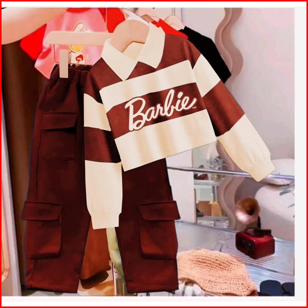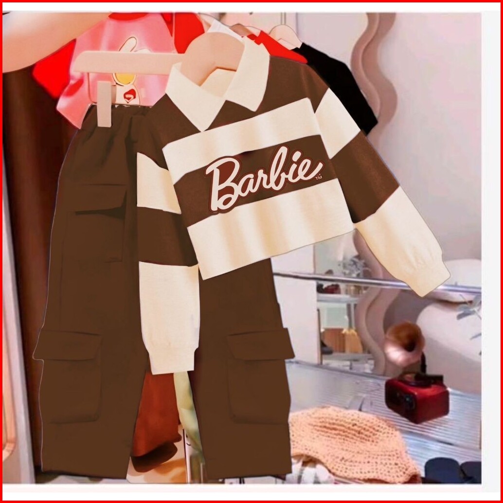 Setelan Terlaris Anak Perempuan Model Barbie Setrip Kargo Untuk Anak 2-12 Tahun Setelan Anak Terbaru
