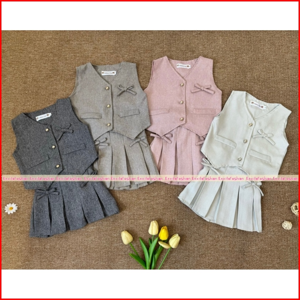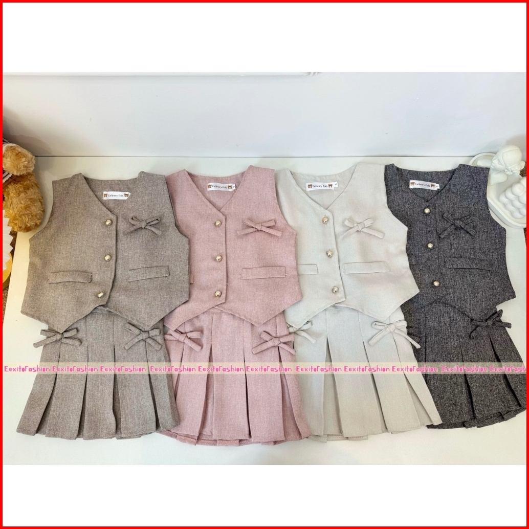 Eexitofashion Jennie Set Vest And Skirt 1 - 4 Tahun One Set Anak Perempuan Fashion Anak Setelan Anak Cewek Set Rompi Dan