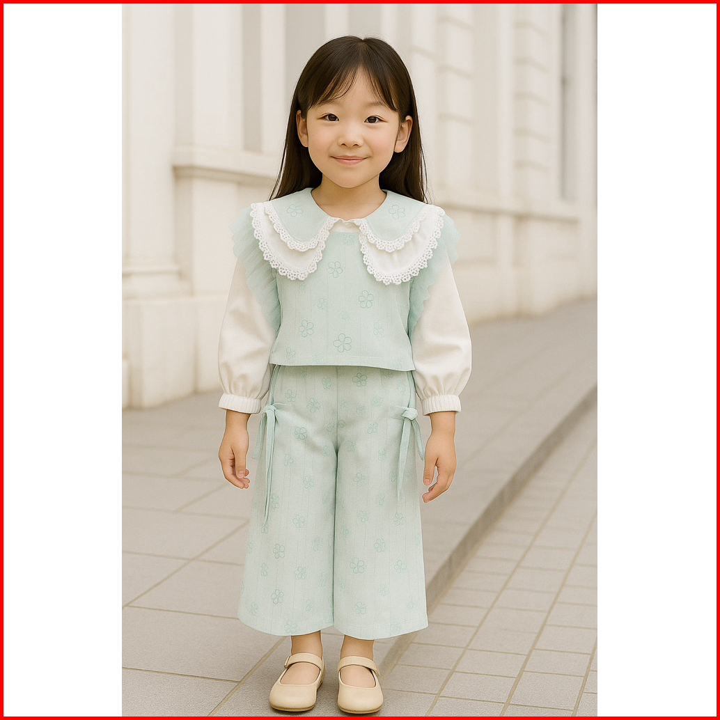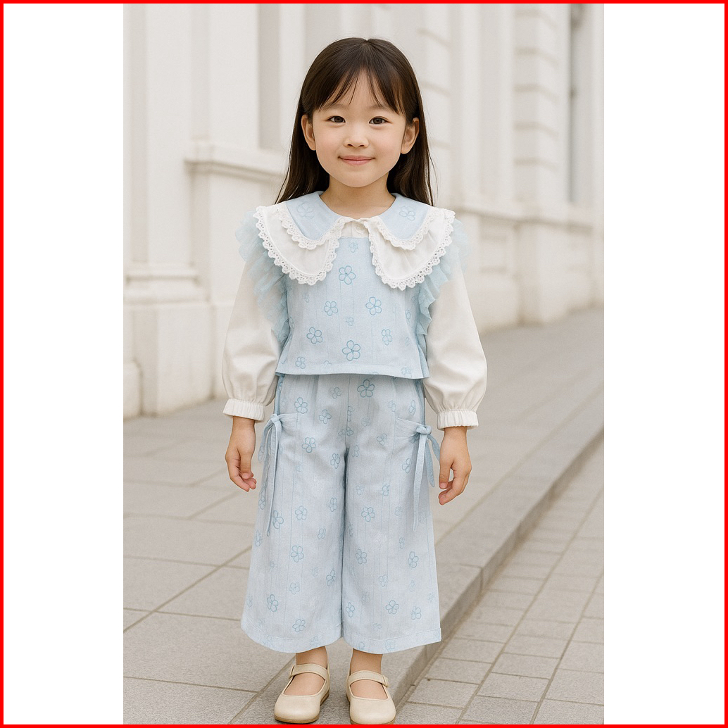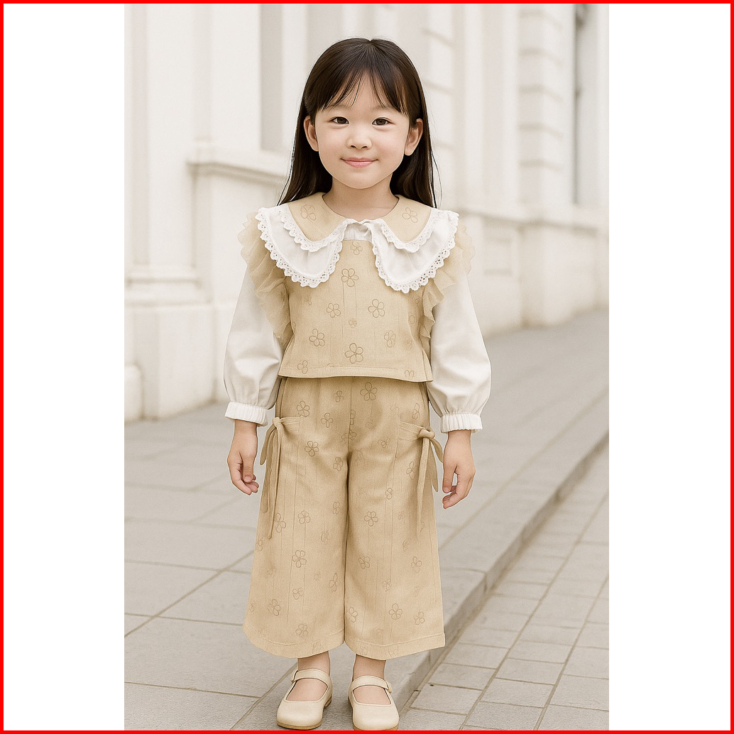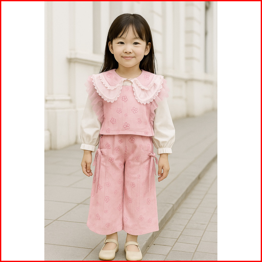 Set 3in1 Leora Setelan Anak Perempuan Korean Style Setelan Tali Pita Anak 2-12tahun