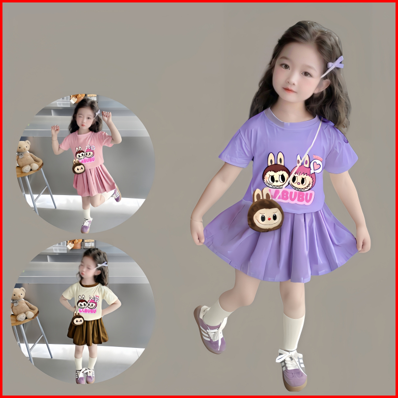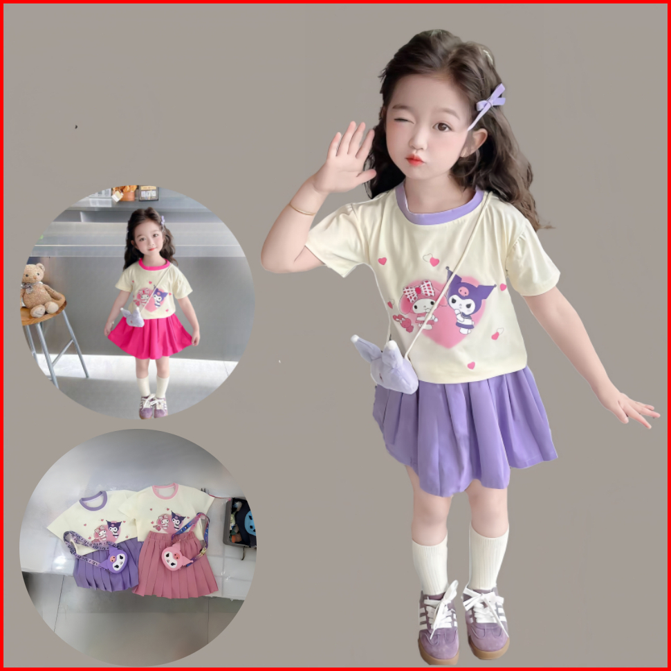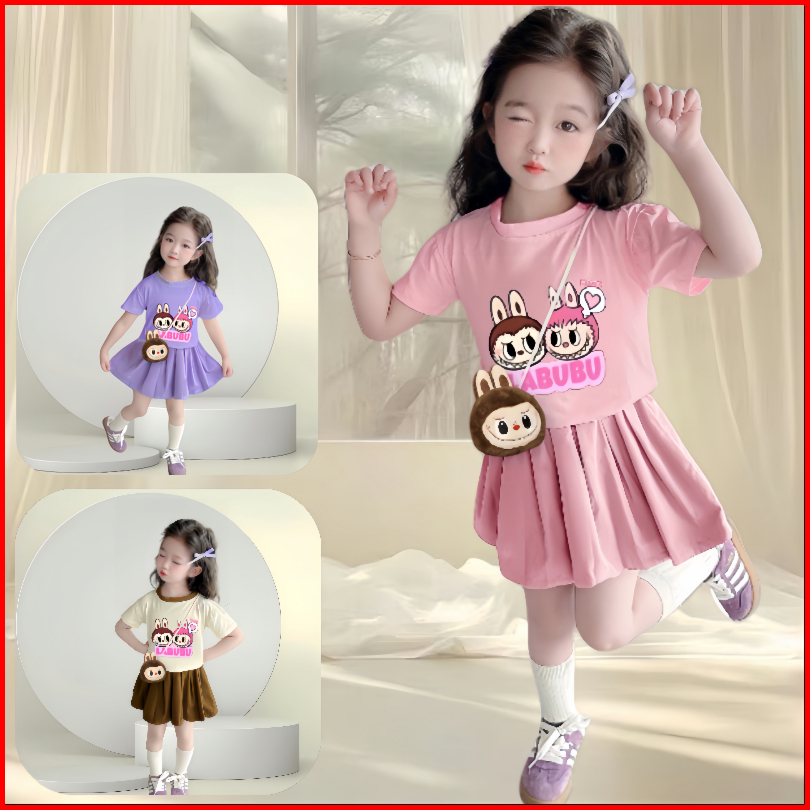 Baju Labubu Anak Perempuan Usia 1-5thn Setelan Rok Anak Perempuan Baju Setelan Kuromi Anak Perempuan