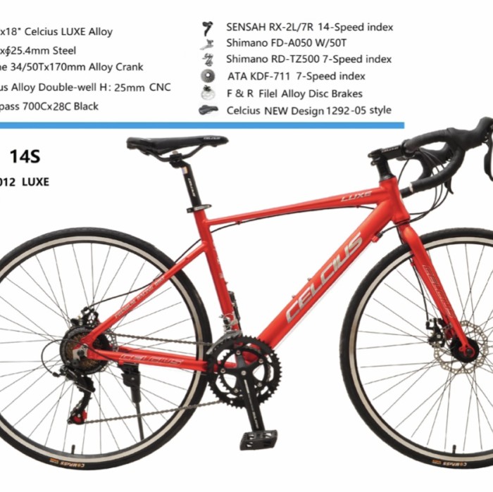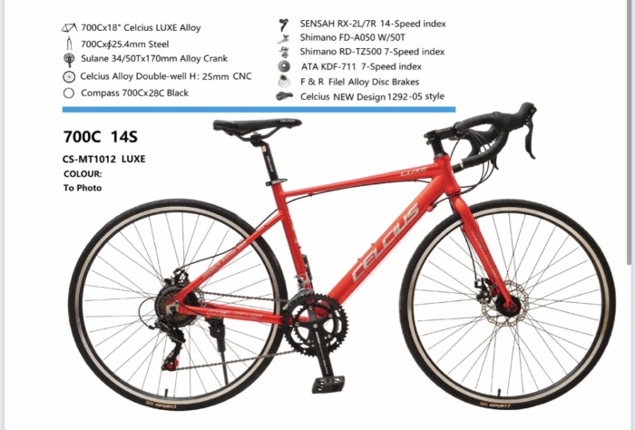 SEPEDA BALAP ROADBIKE 700C CELCIUS ALLOY LUXE MURAH - RED, 2X7 SPEED